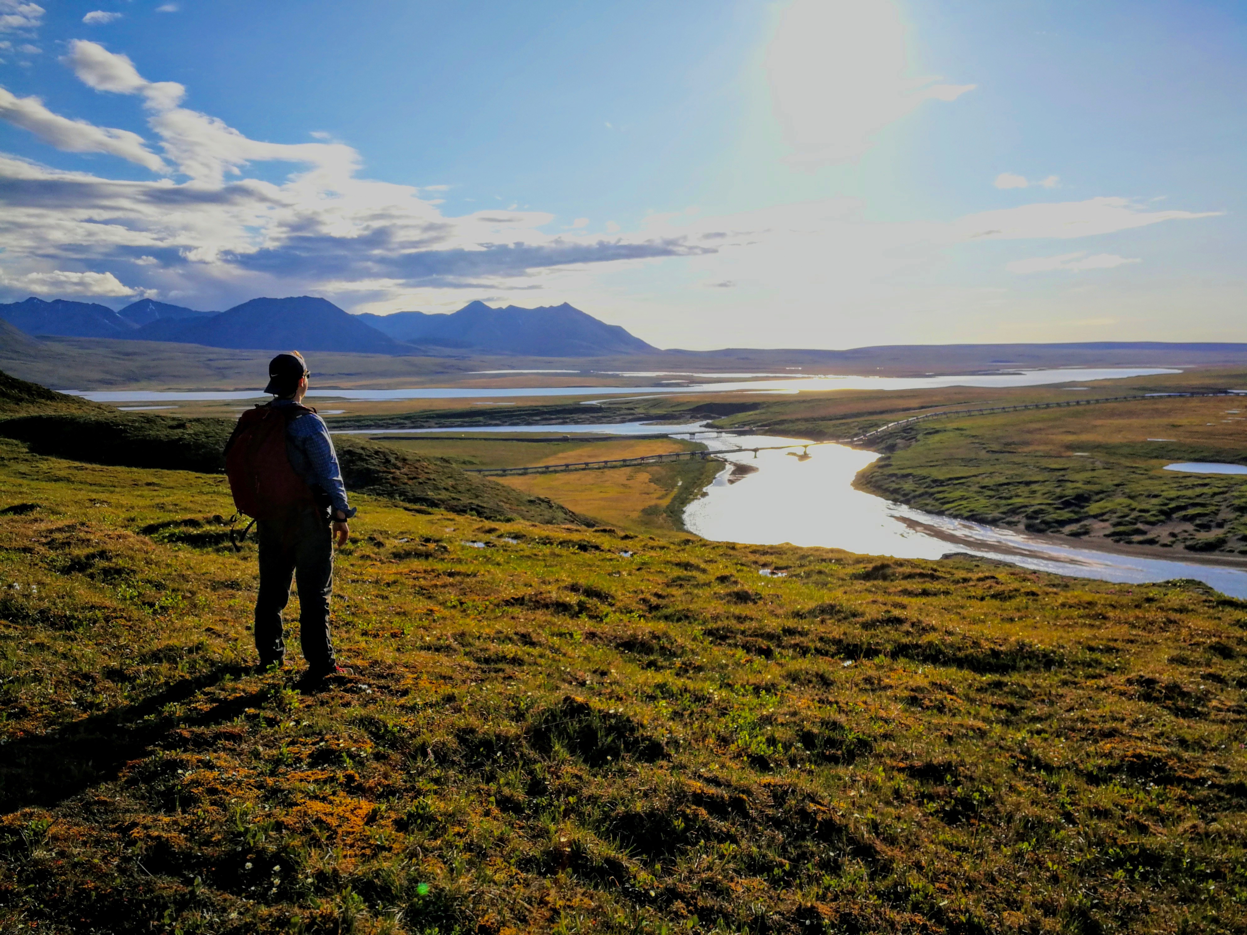 David Walker looks out over the North Slope from Atigun Gorge, in the Arctic National Wildlife Refuge, Alaska.