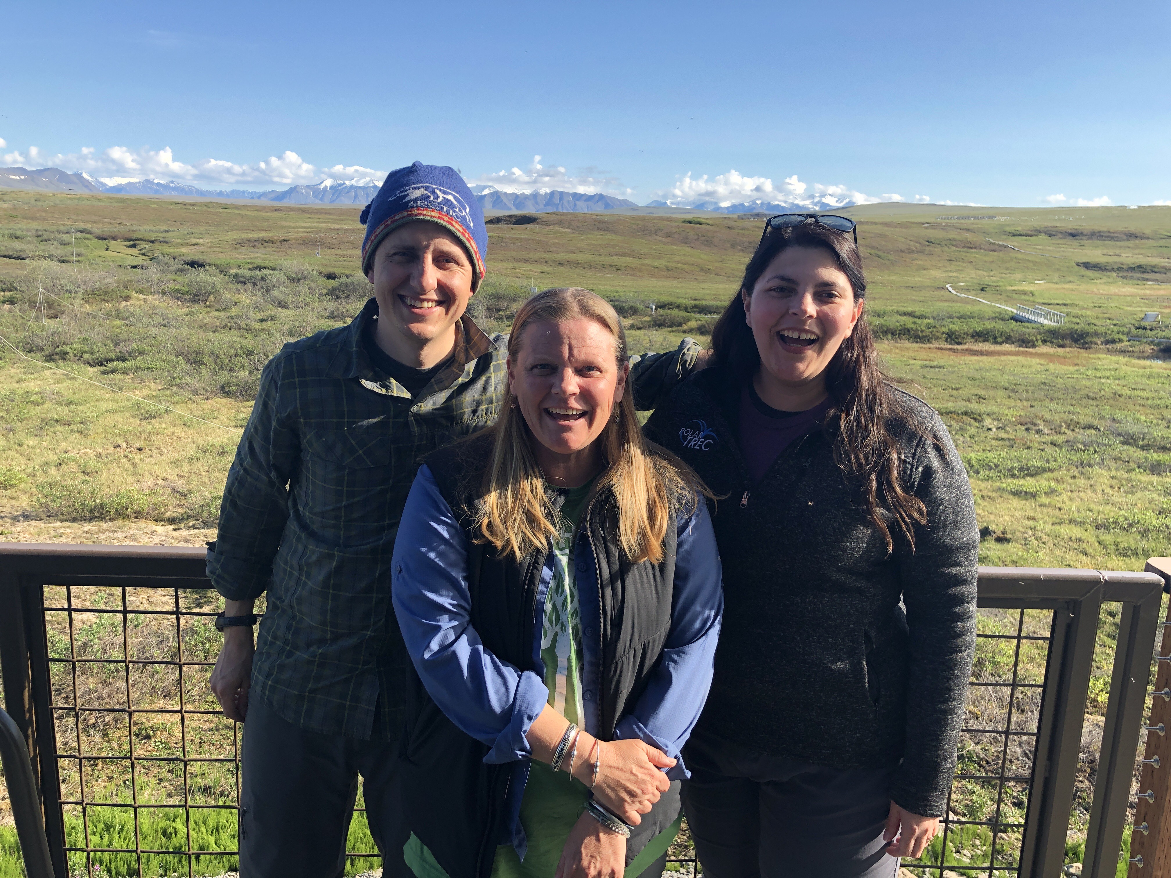 PolarTREC teachers David Walker, Svea Anderson, and Alejandra Martinez enjoy a sunny day at Toolik Field Station, Alaska.