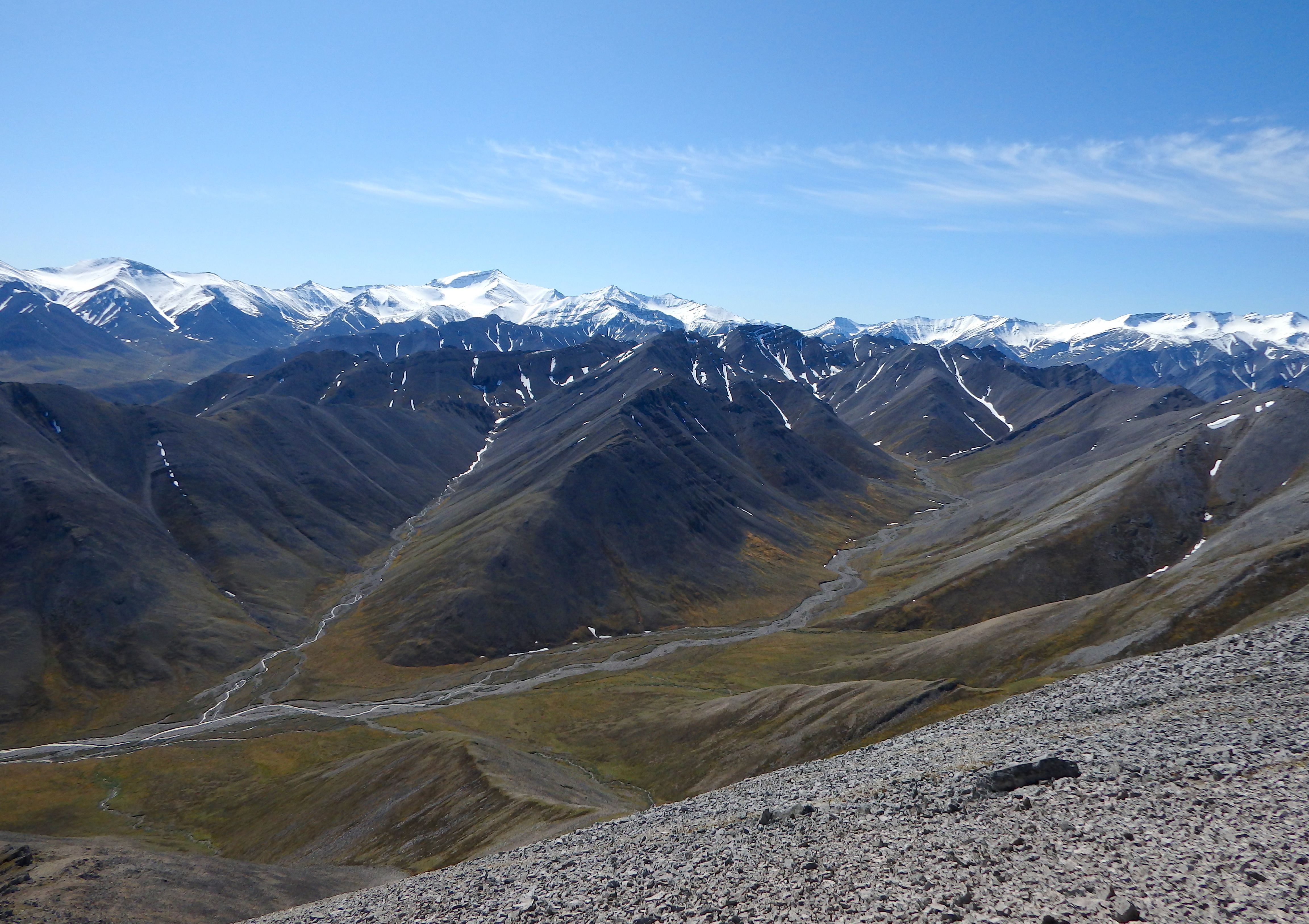 The northern Brooks Range is clearly visible from the top of Teardrop Ridge. Brooks Range, North Slope, Alaska.