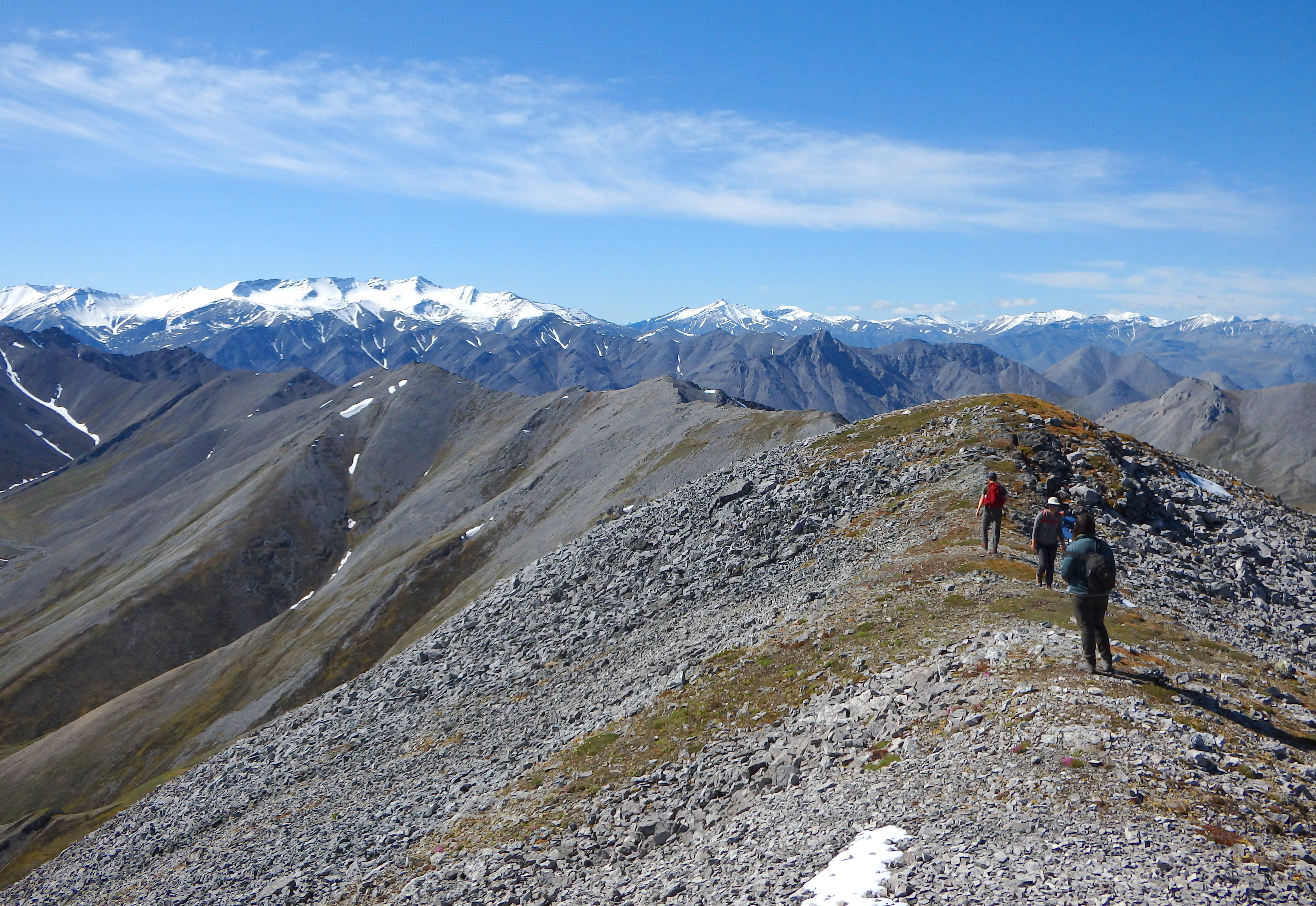 Field scientists hike the Teardrop Ridge in the northern Brooks Range. North Slope, Alaska.