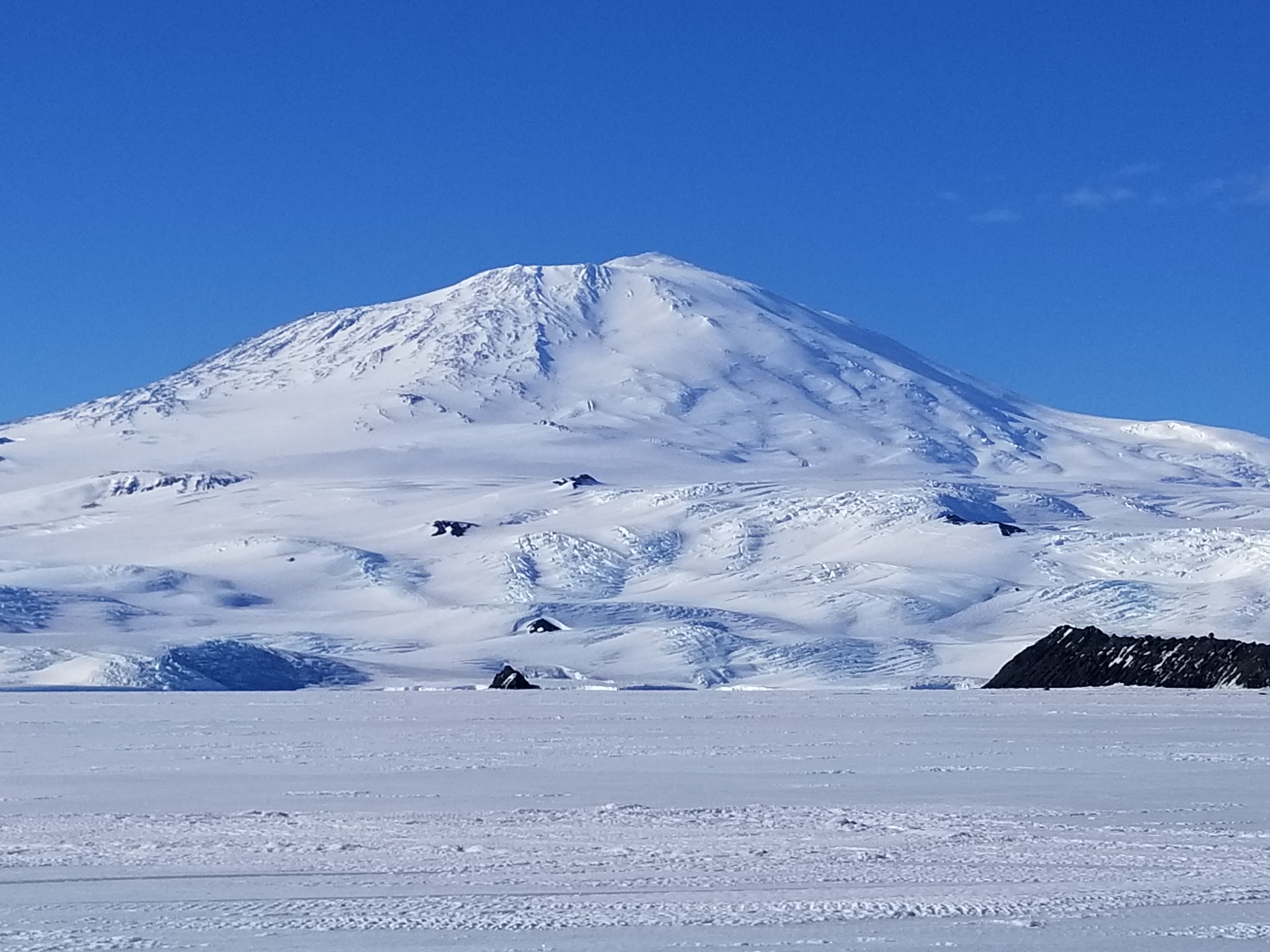 A view of Mount Erebus on a sunny day. Cape Evans, Antarctica.