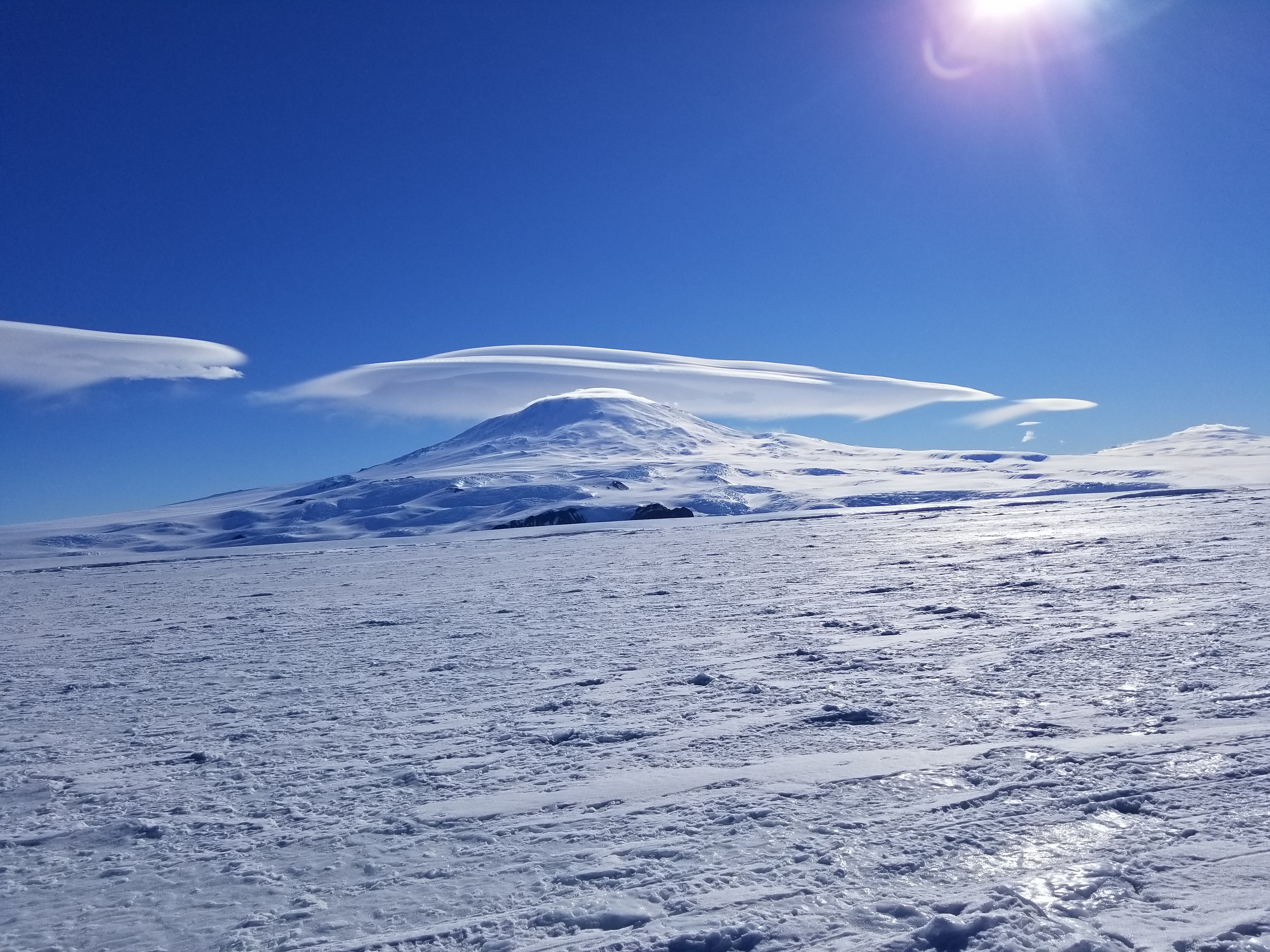 Mount Erebus with a lenticular cloud above it. McMurdo Station, Antarctica.