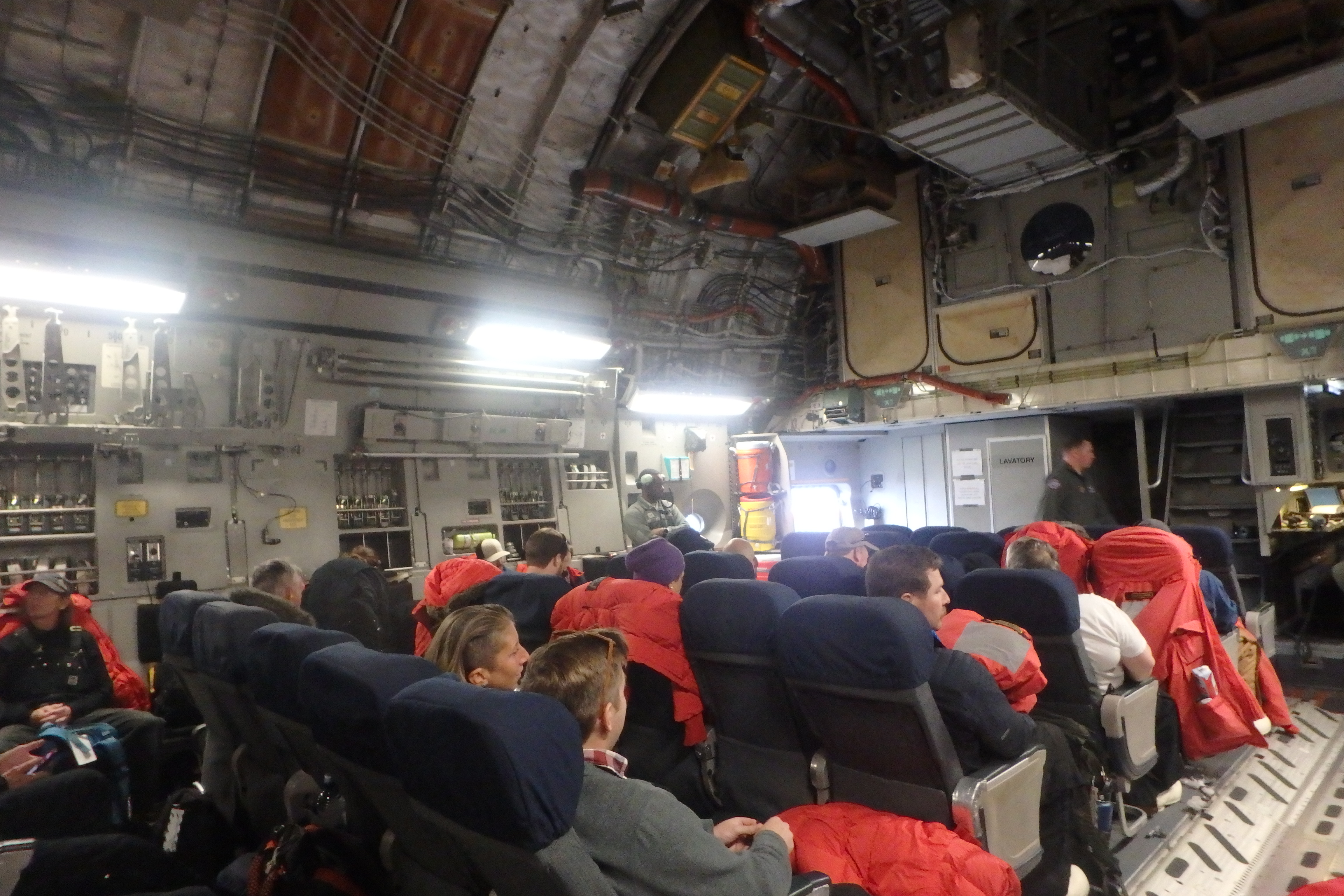 The interior of the C-17 with the passengers aboard. Christchurch, New Zealand.