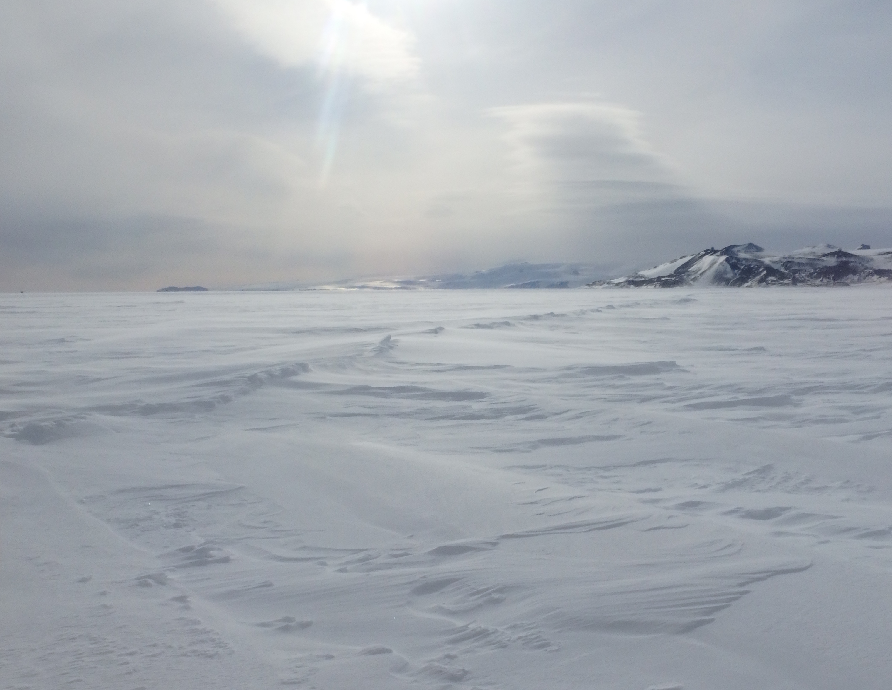A small pressure ridge formed from two colliding plates of sea ice. McMurdo Station, Antarctica.