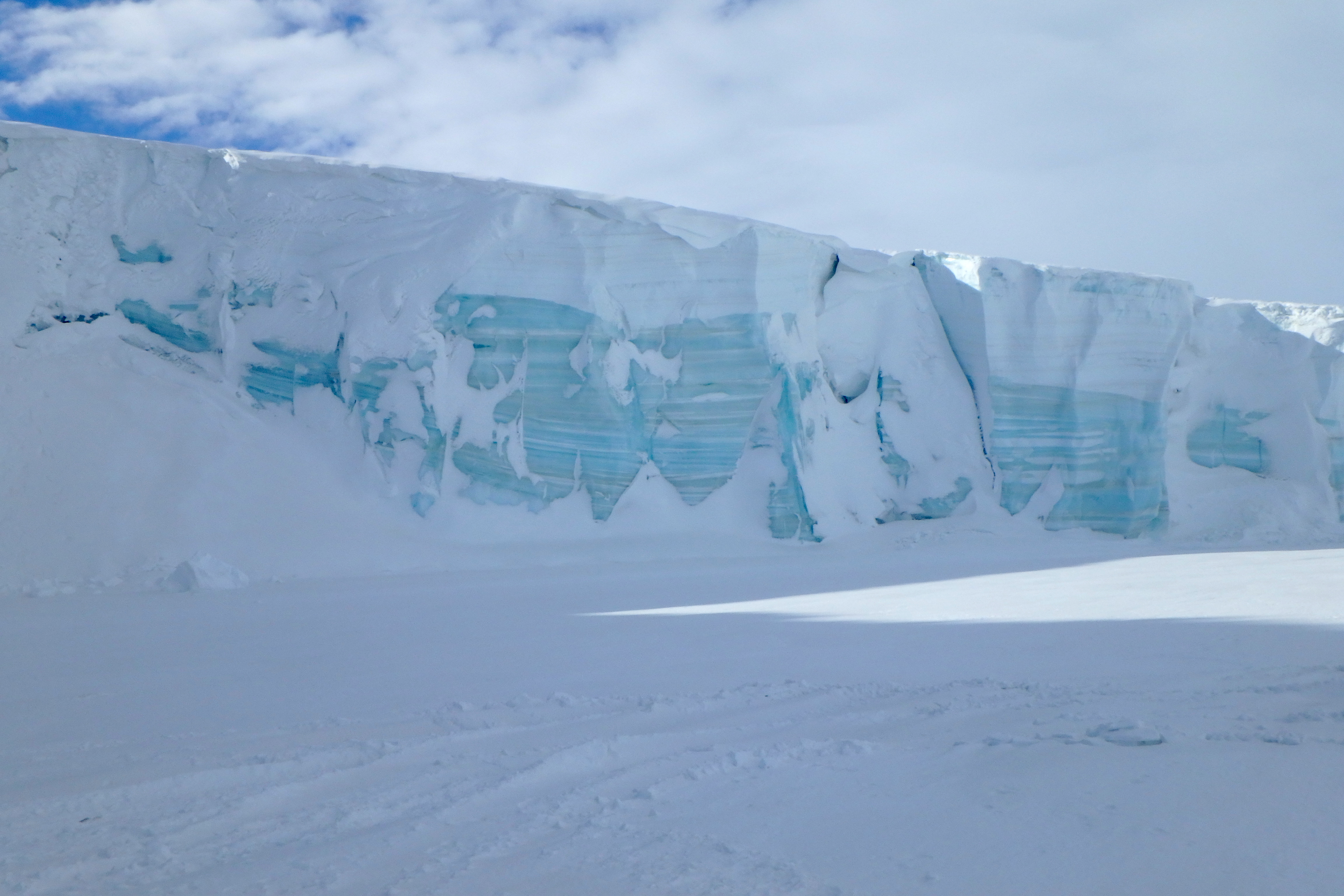 The ice wall near the dive hut at Cape Evans, Antarctica.