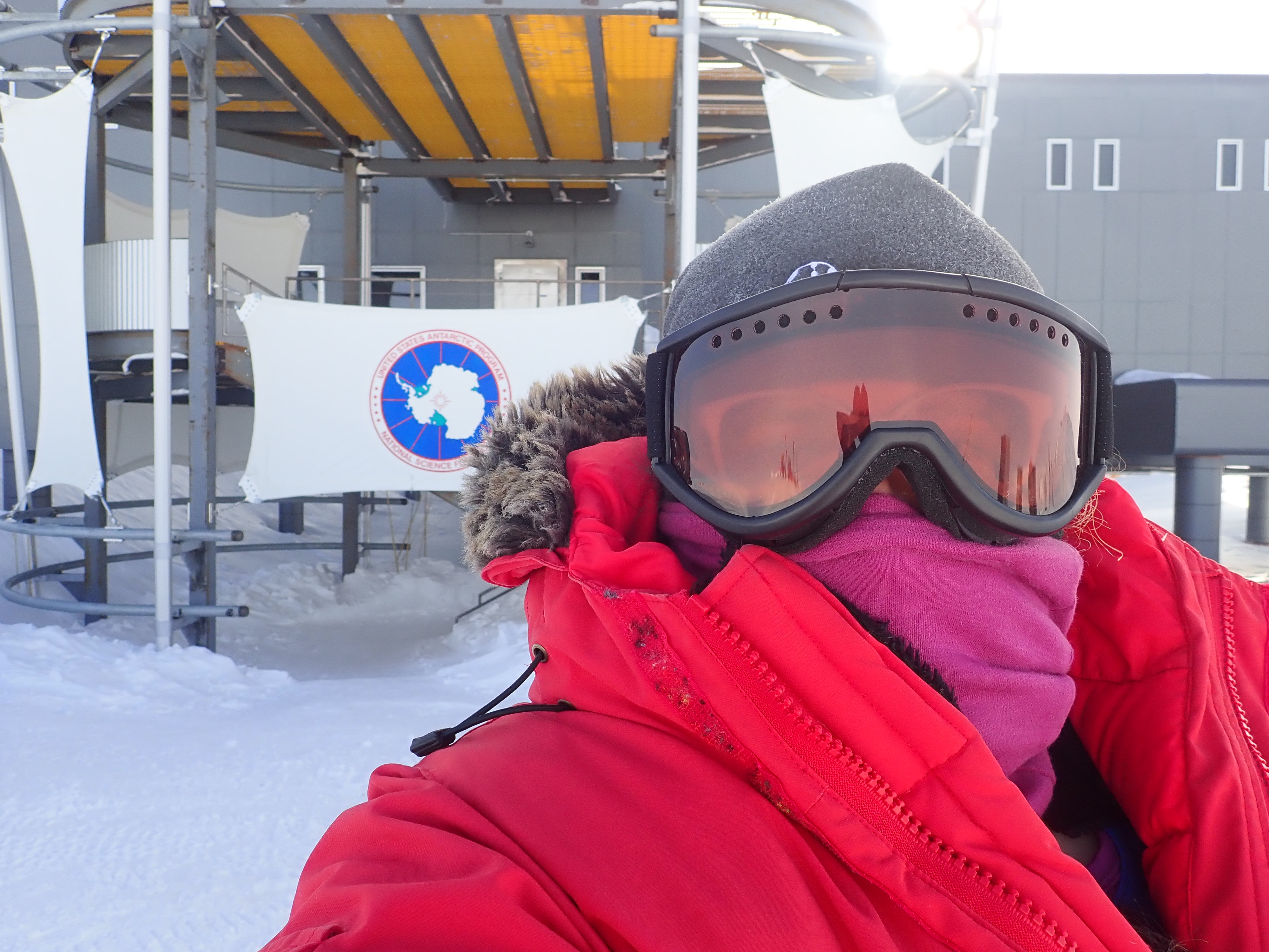 Jocelyn Argueta poses outside the Amundsen-Scott South Pole Station, Antarctica.