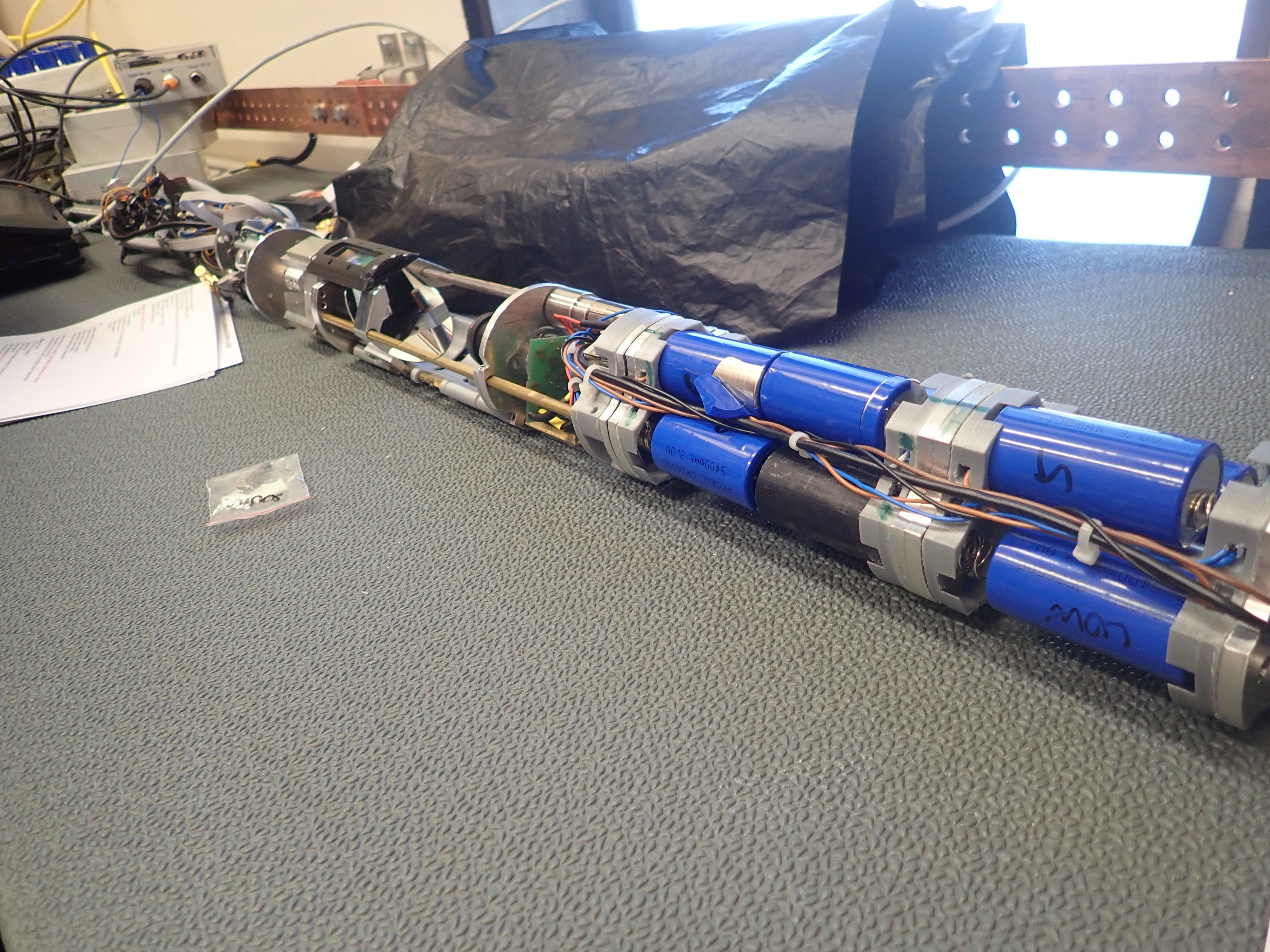 The fluorescence logger outside of its glass casing waits for new batteries. Amundsen-Scott South Pole Station, Antarctica.