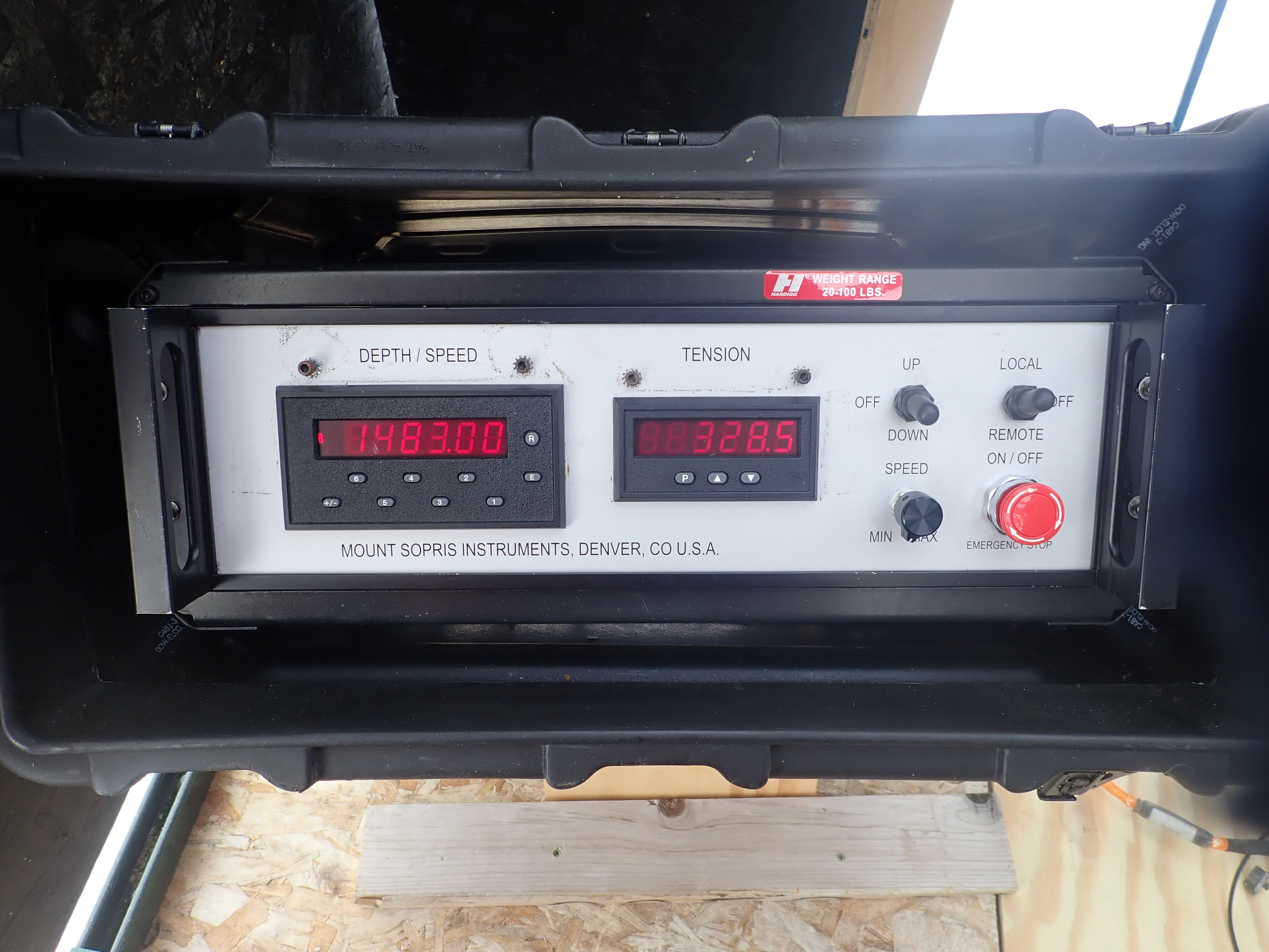 The cable winch is controlled from inside the Crystal Palace for SPICE Core camp. The goal of SPICE Core is to study different properties of the ice by deploying specialized devices into an open ice hole 1.75 km in depth. Amundsen-Scott South Pole Station, Antarctica.