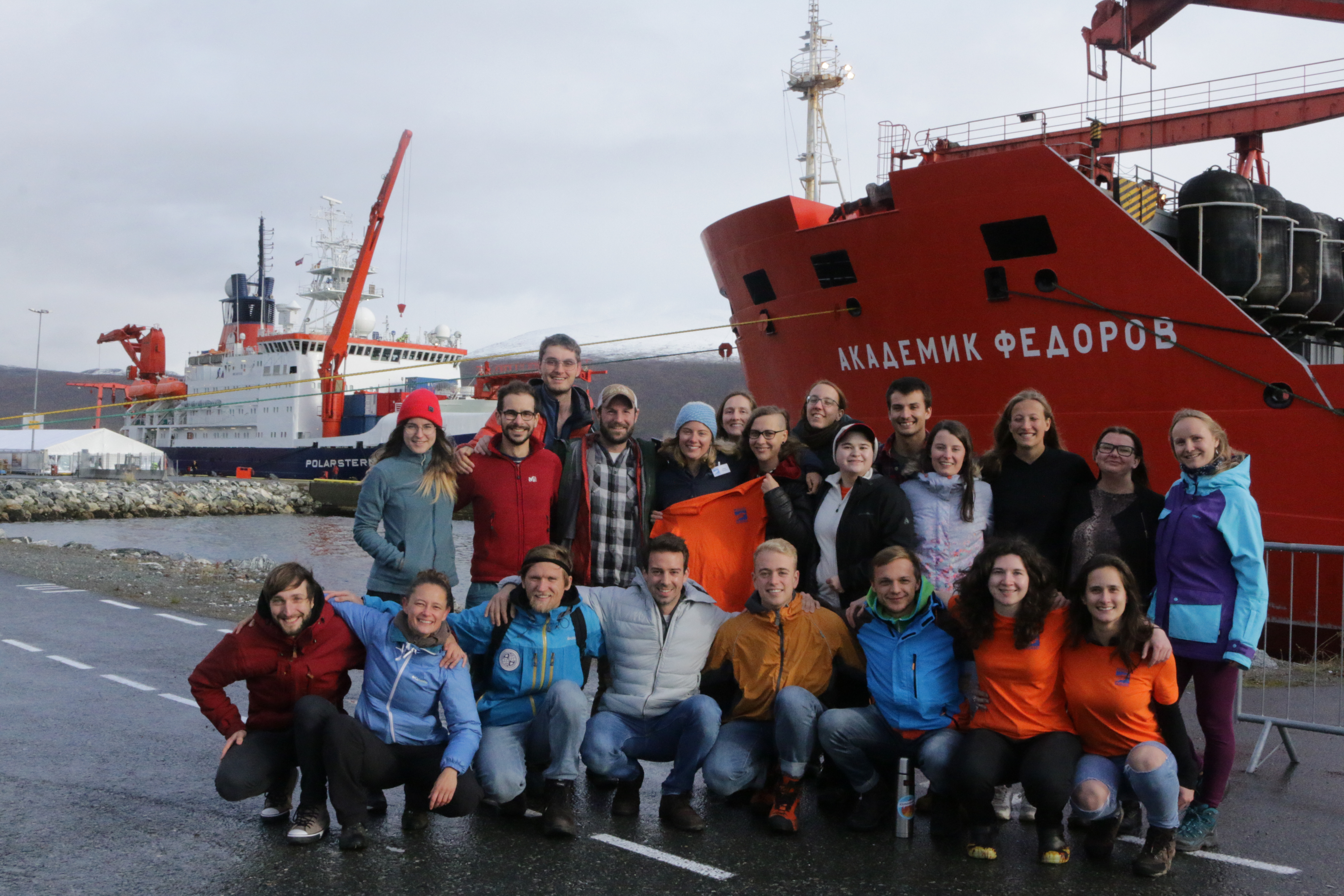 Katie Gavenus: "These 20 graduate students had the unique opportunity through APECS (Association for Polar Early Career Scientists) to participate in MOSAiC School aboard the R/V Fedorov and assist with field work." Tromsø, Norway.
