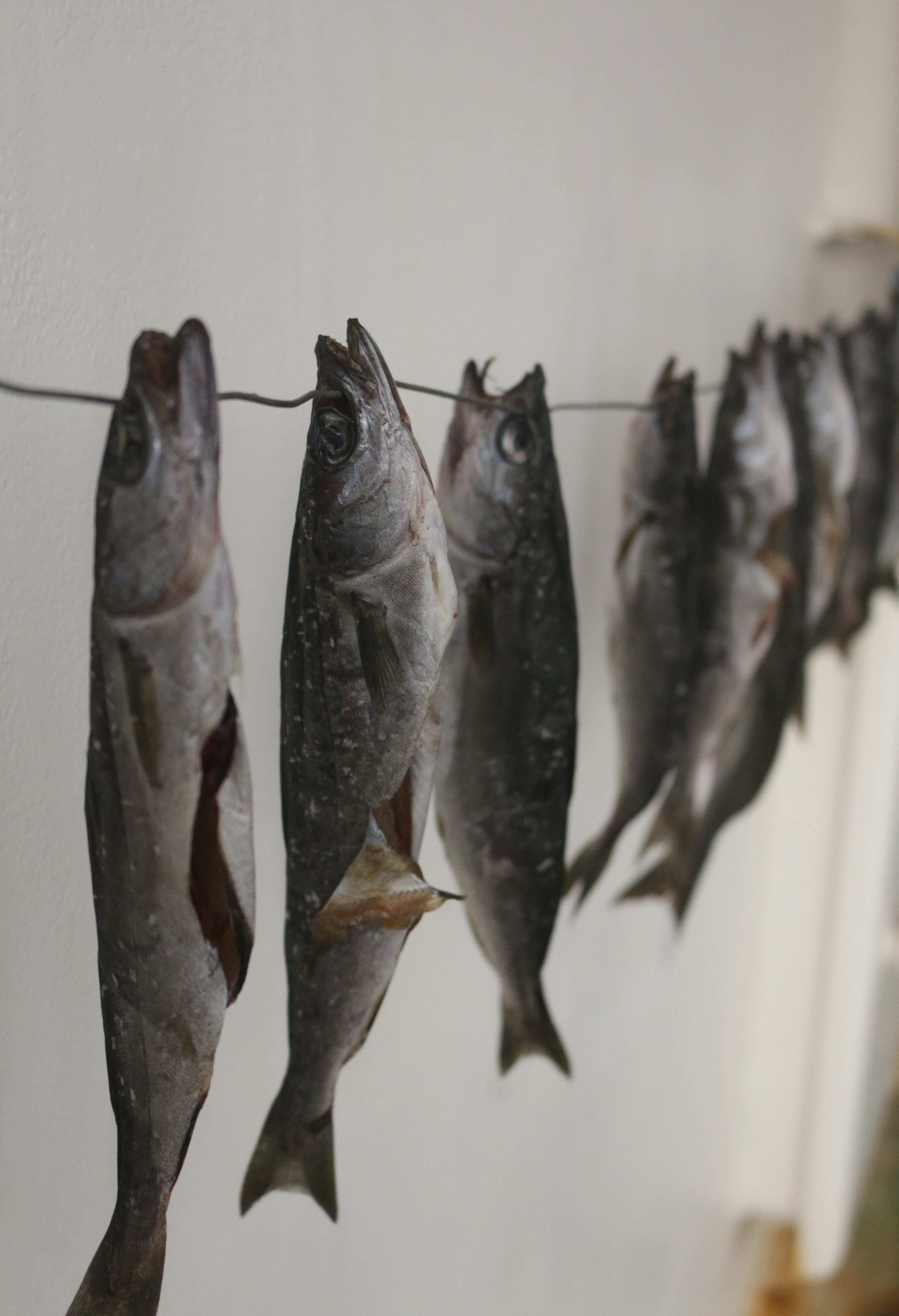 Katie Gavenus: "A crewmember strung these herring or other small fish outside their cabin to dry. Cuisine on the R/V Fedorov includes a lot of fish, but presumably this was a personal snack!" Aboard the R/V Akademik Fedorov in the Barents Sea.