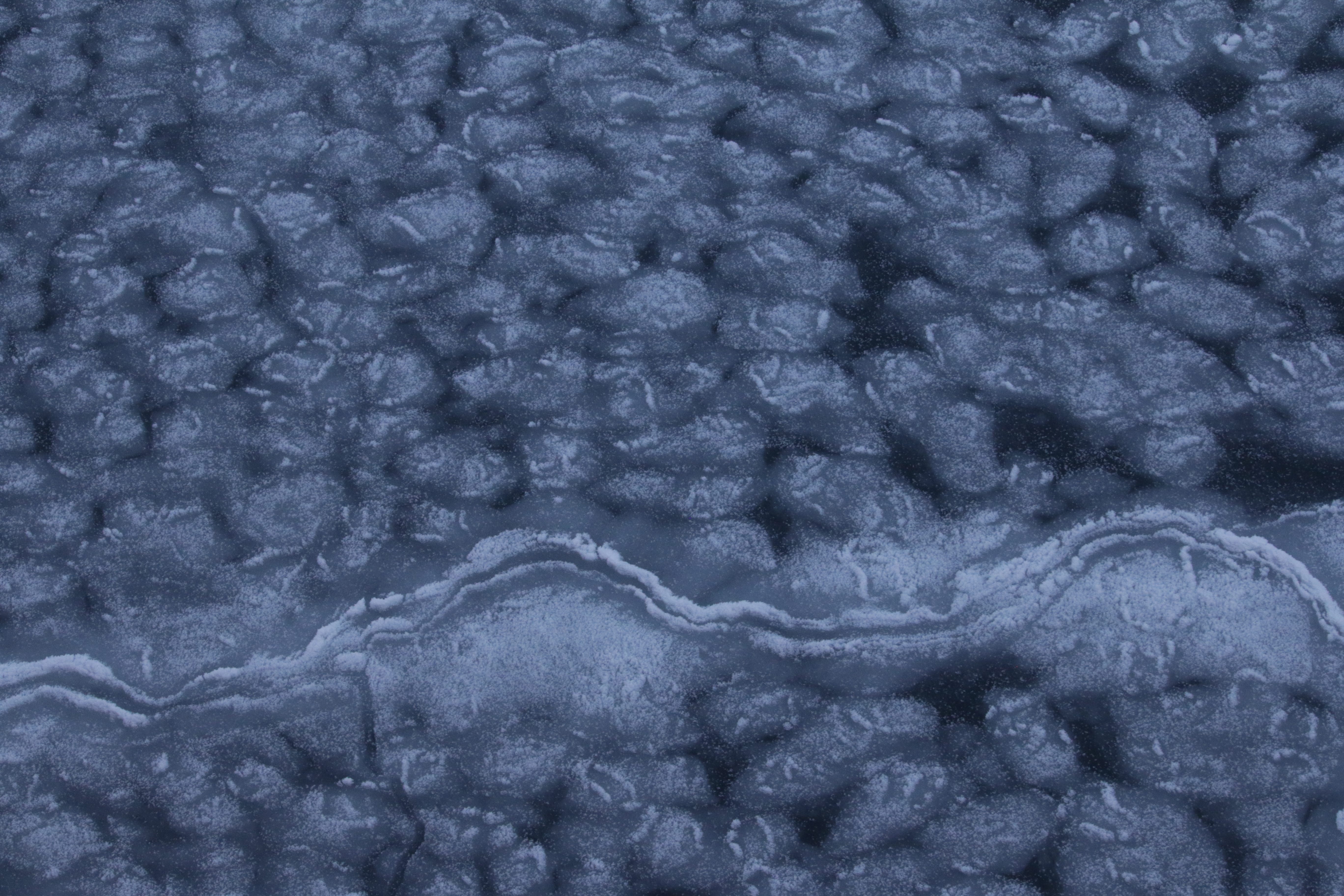Small pancakes of sea ice first form in slushy water. If conditions persist, they can freeze together into 'cemented pancakes' like this. Aboard the R/V Akademik Fedorov in the Central Arctic Ocean.
