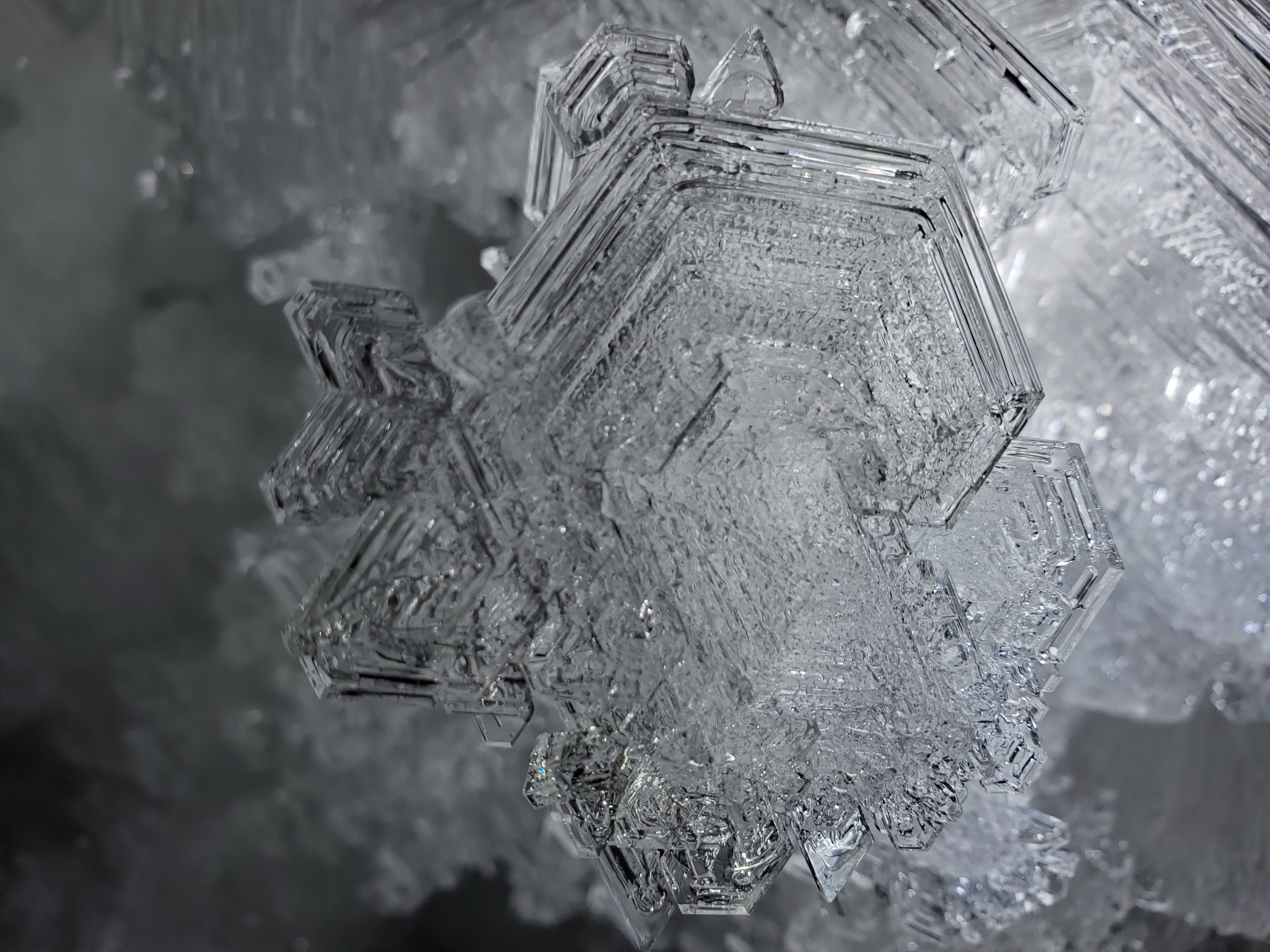 A close-up view of ice crystal formations inside a permafrost tunnel in Utqiagvik, Alaska.