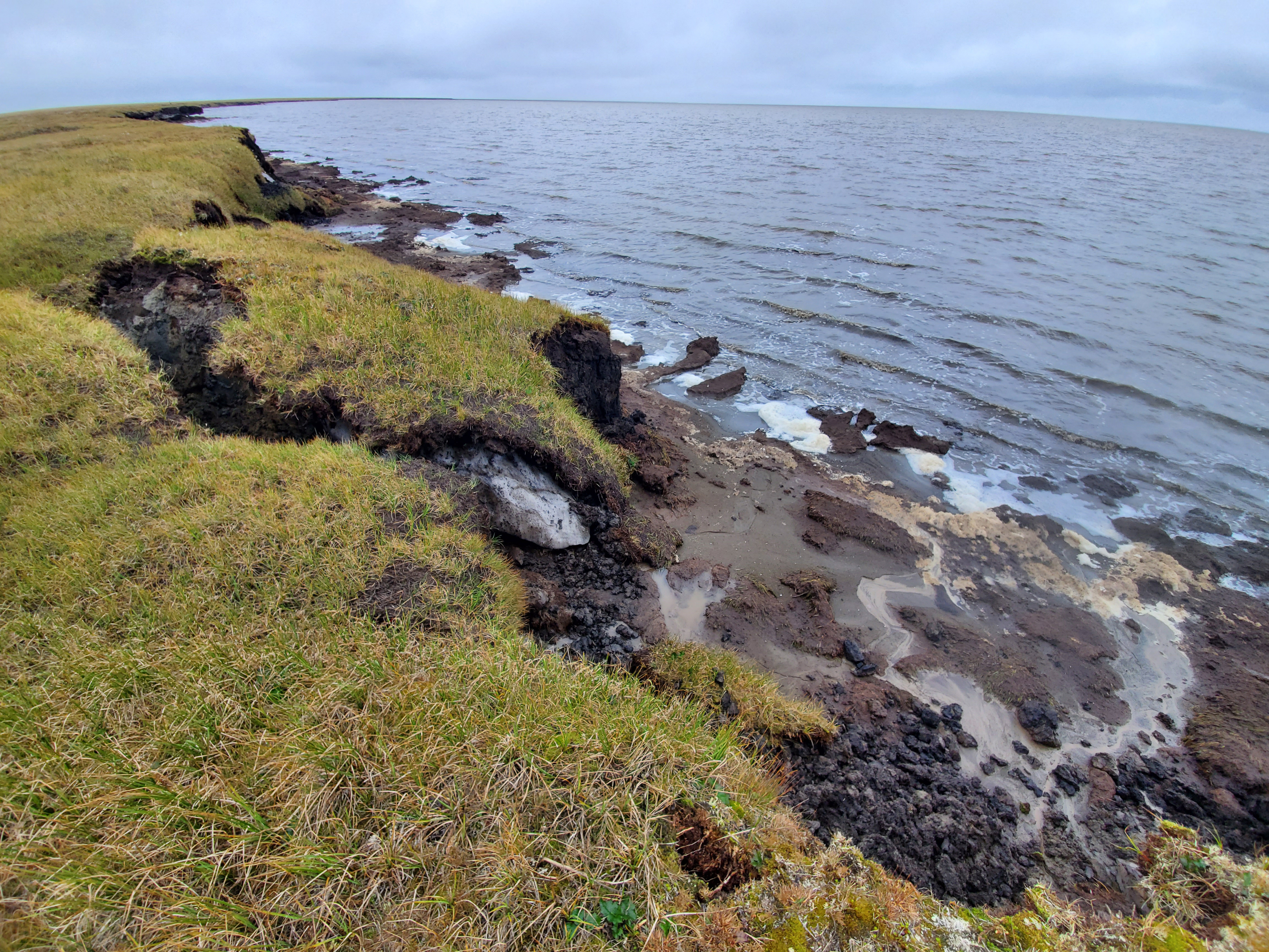 Coastal erosion exposes the permafrost along the coast of Utqiagvik, Alaska.