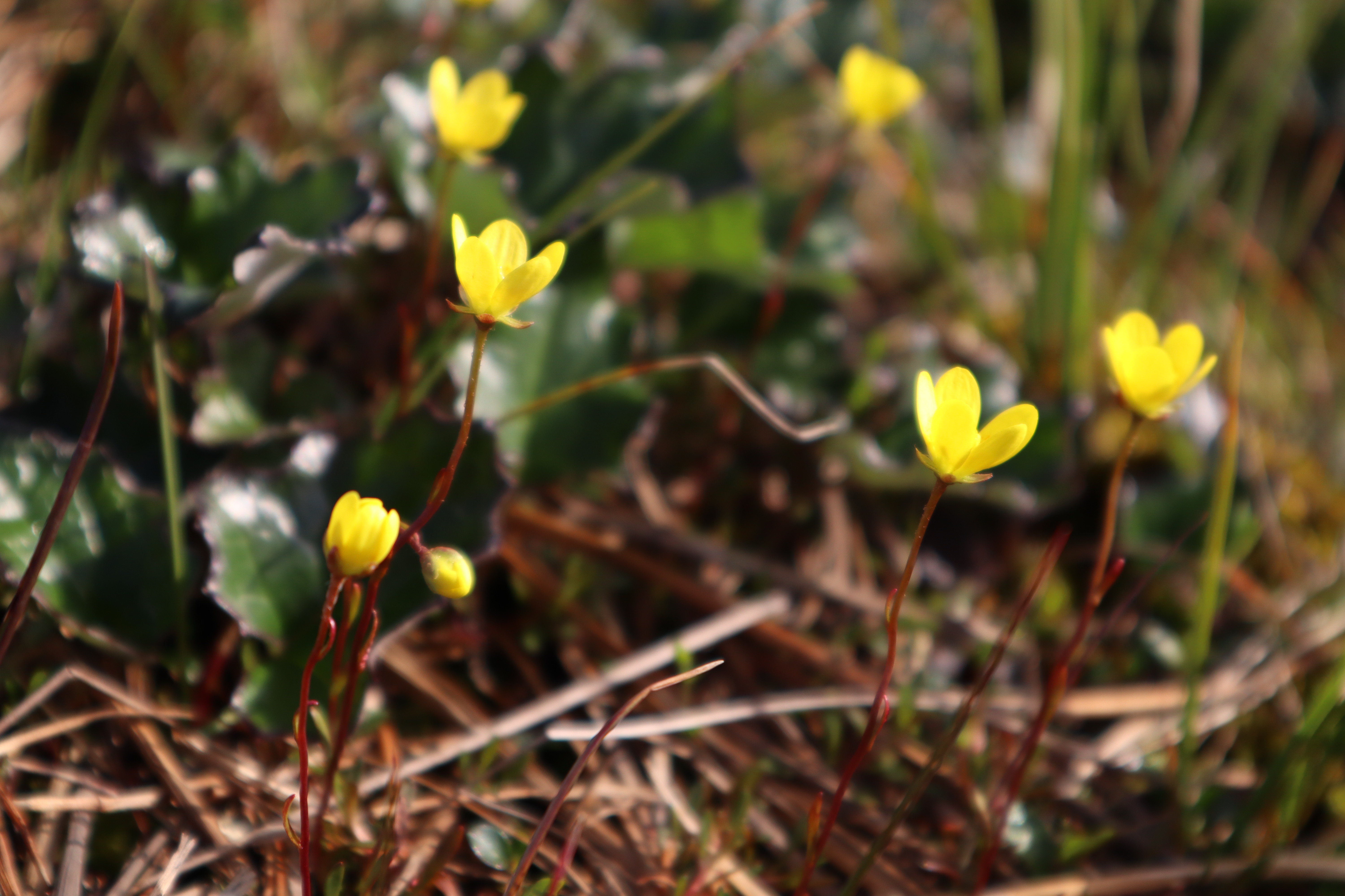Bog saxifrage (Saxifraga hirculus) can be found throughout the tundra of northern Alaska. Utqiagvik, Alaska.