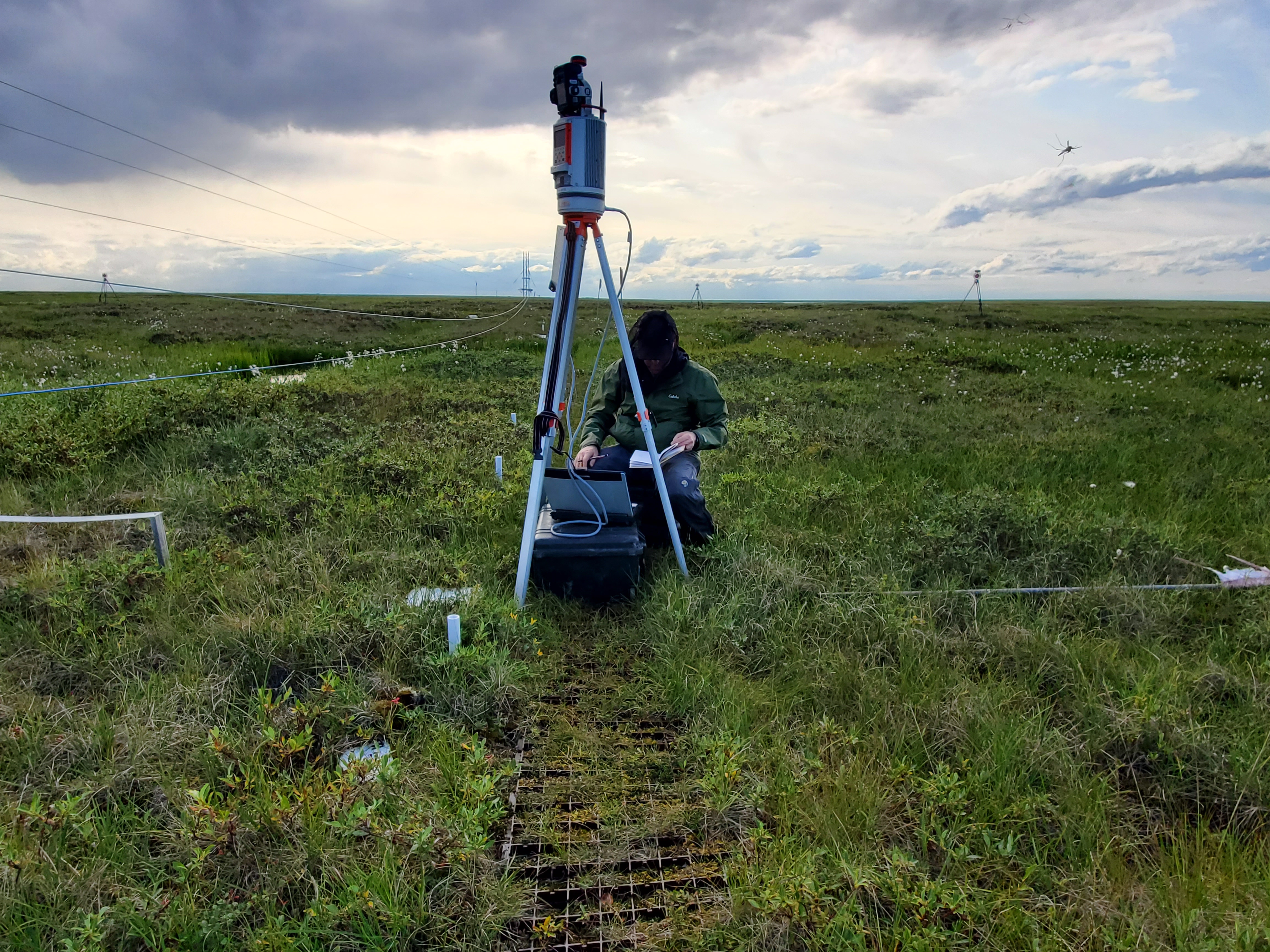 GPS Technician Ryan Cody conducts a lidar scan of the tundra in Atqasuk, Alaska.