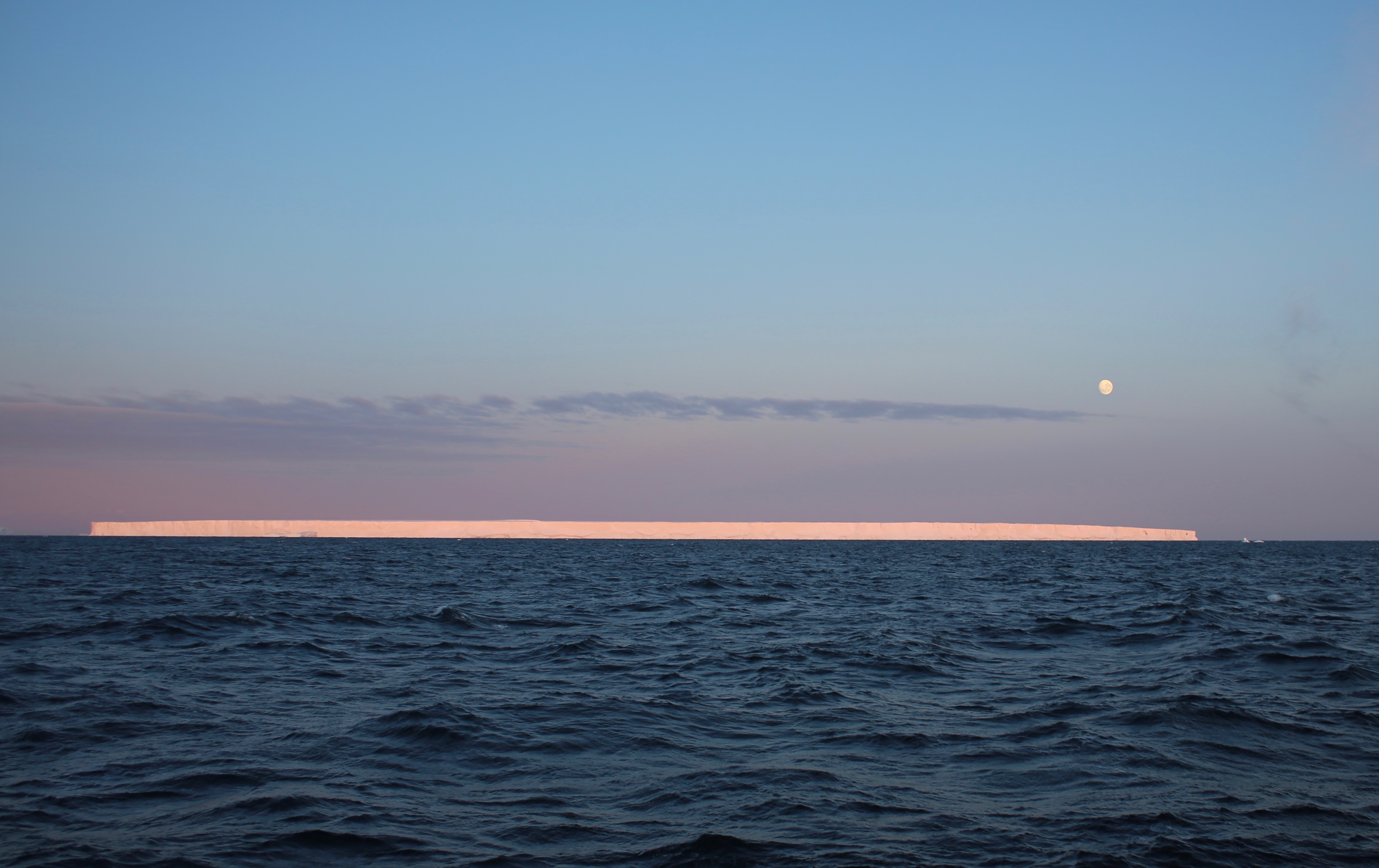 Tabular icebergs are icebergs that have recently broken off from ice sheets and have nearly vertical sides. Aboard the R/V Nathaniel B. Palmer icebreaker in the Southern Ocean.