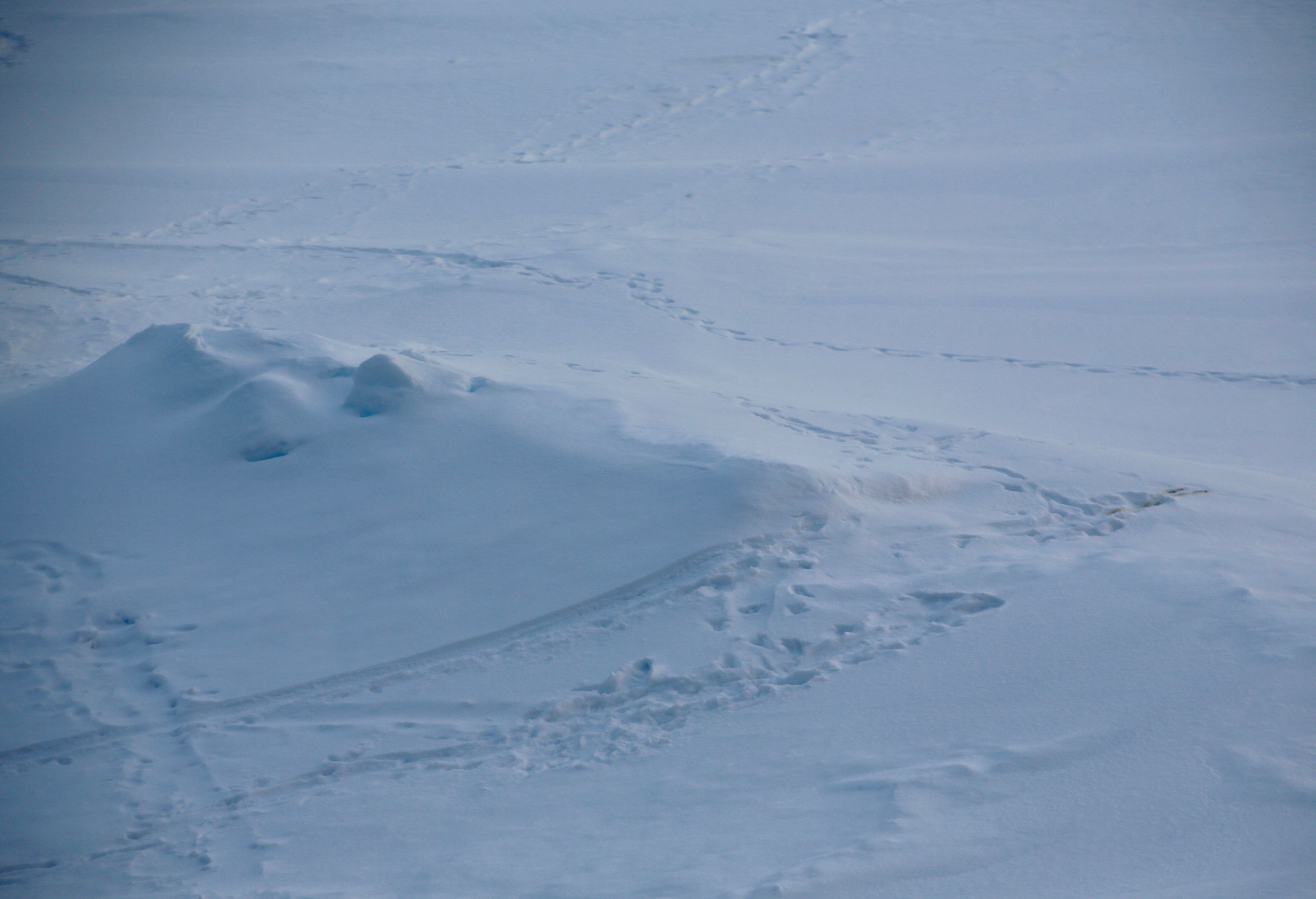 New snow that had accumulated on top of the sea ice allowed seals and penguins to leave evidence of their presence in the form of tracks. Aboard the R/V Nathaniel B. Palmer icebreaker in the Southern Ocean.