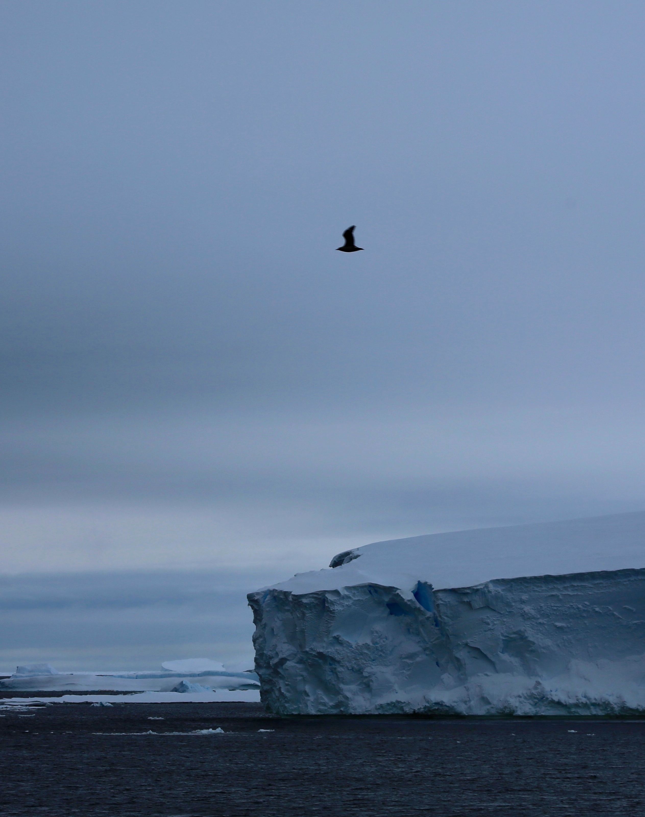 Dusk near the edge of the Antarctic continent. Aboard the R/V Nathaniel B. Palmer icebreaker in the Southern Ocean.