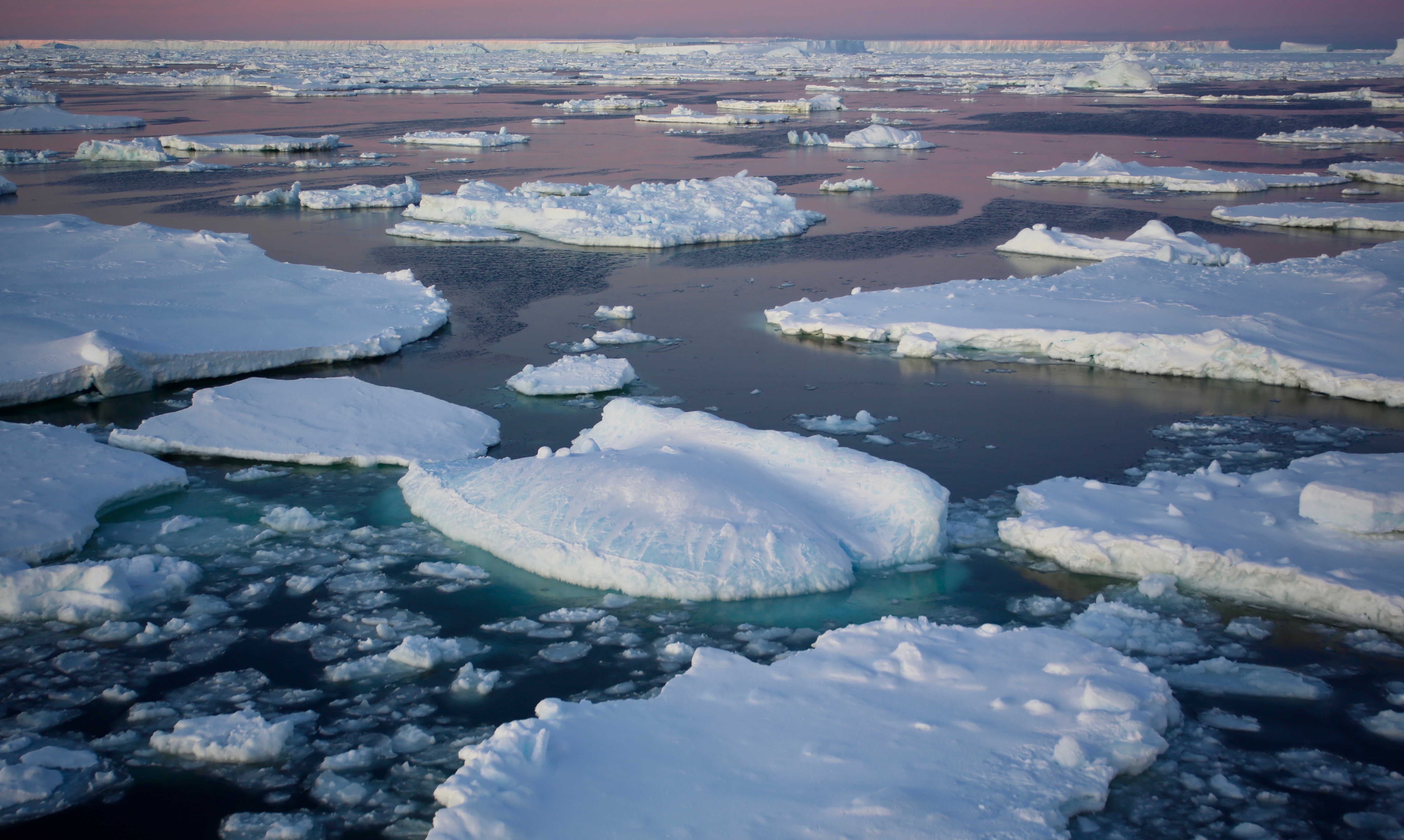 Sarah Slack: "Large pieces of relatively flat sea ice often dot the water in the Amundsen Sea." Aboard the R/V Nathaniel B. Palmer icebreaker in the Southern Ocean.