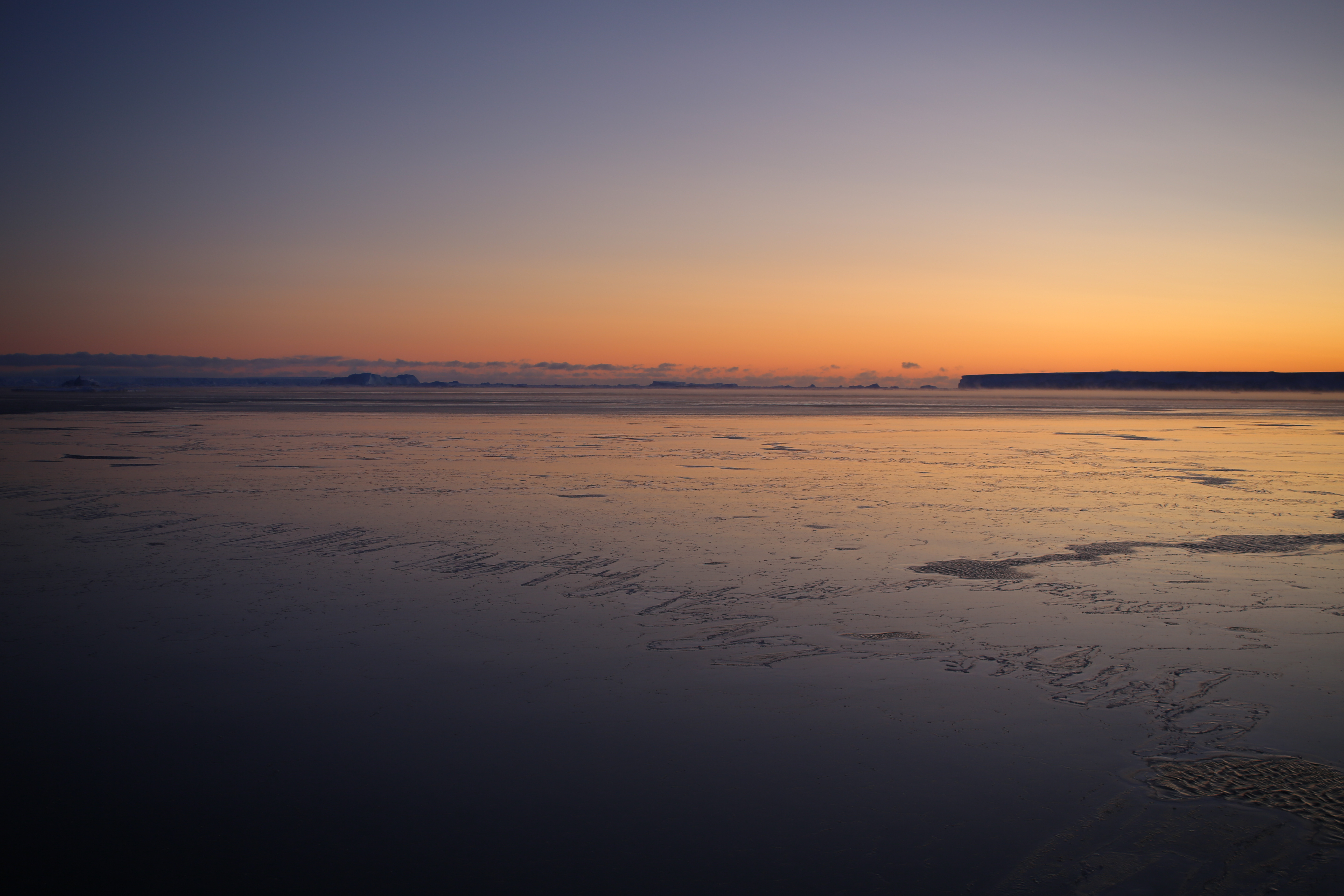 The surface of the ocean begins to freeze. Aboard the R/V Nathaniel B. Palmer icebreaker in the Southern Ocean.