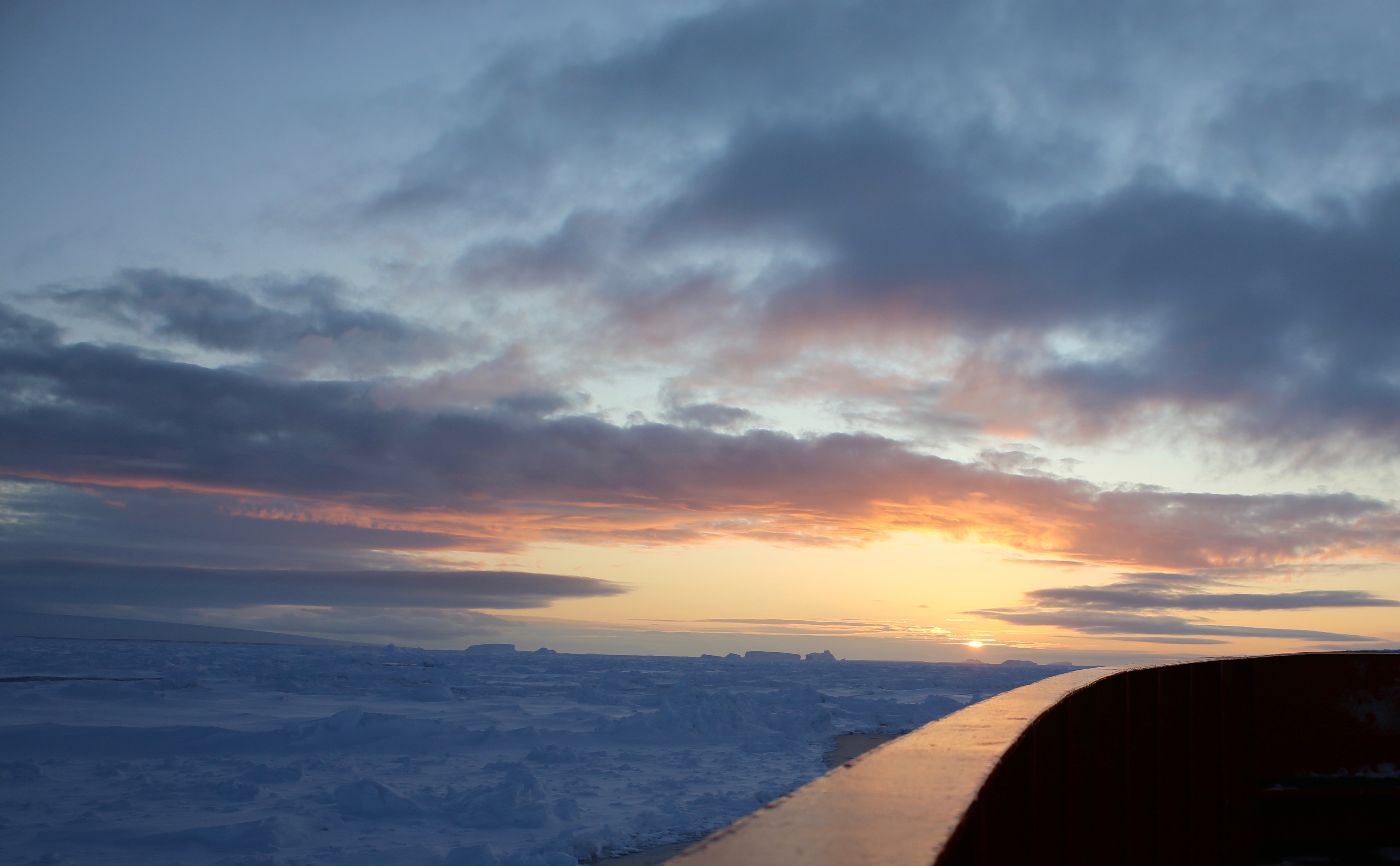 The ship struggles through heavy sea ice as the ship makes its way back to Punta Arenas, Chile. Aboard the R/V Nathaniel B. Palmer icebreaker in the Southern Ocean.
