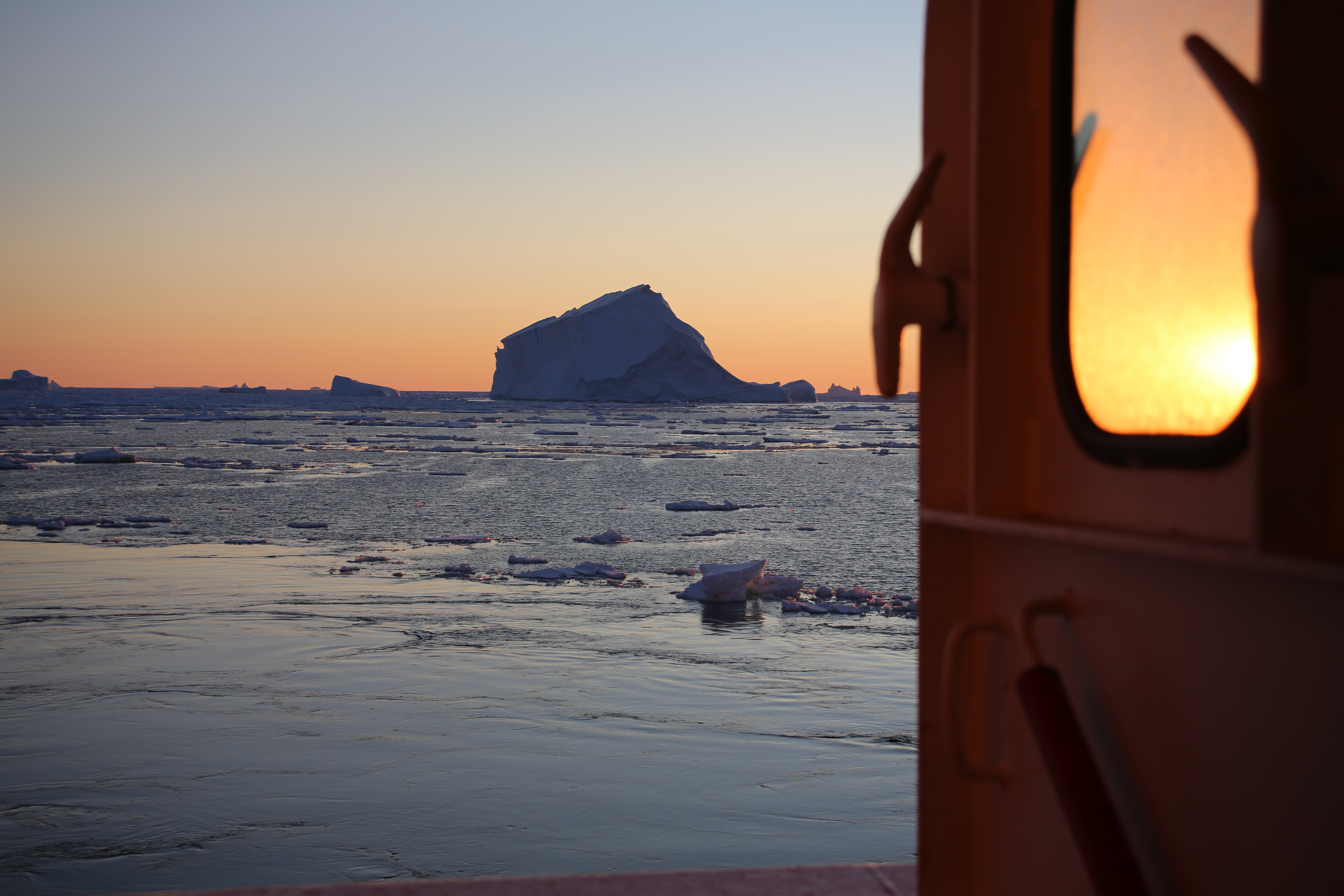 An iceberg outside the aft port door of the R/V Nathaniel B. Palmer icebreaker in the Southern Ocean.