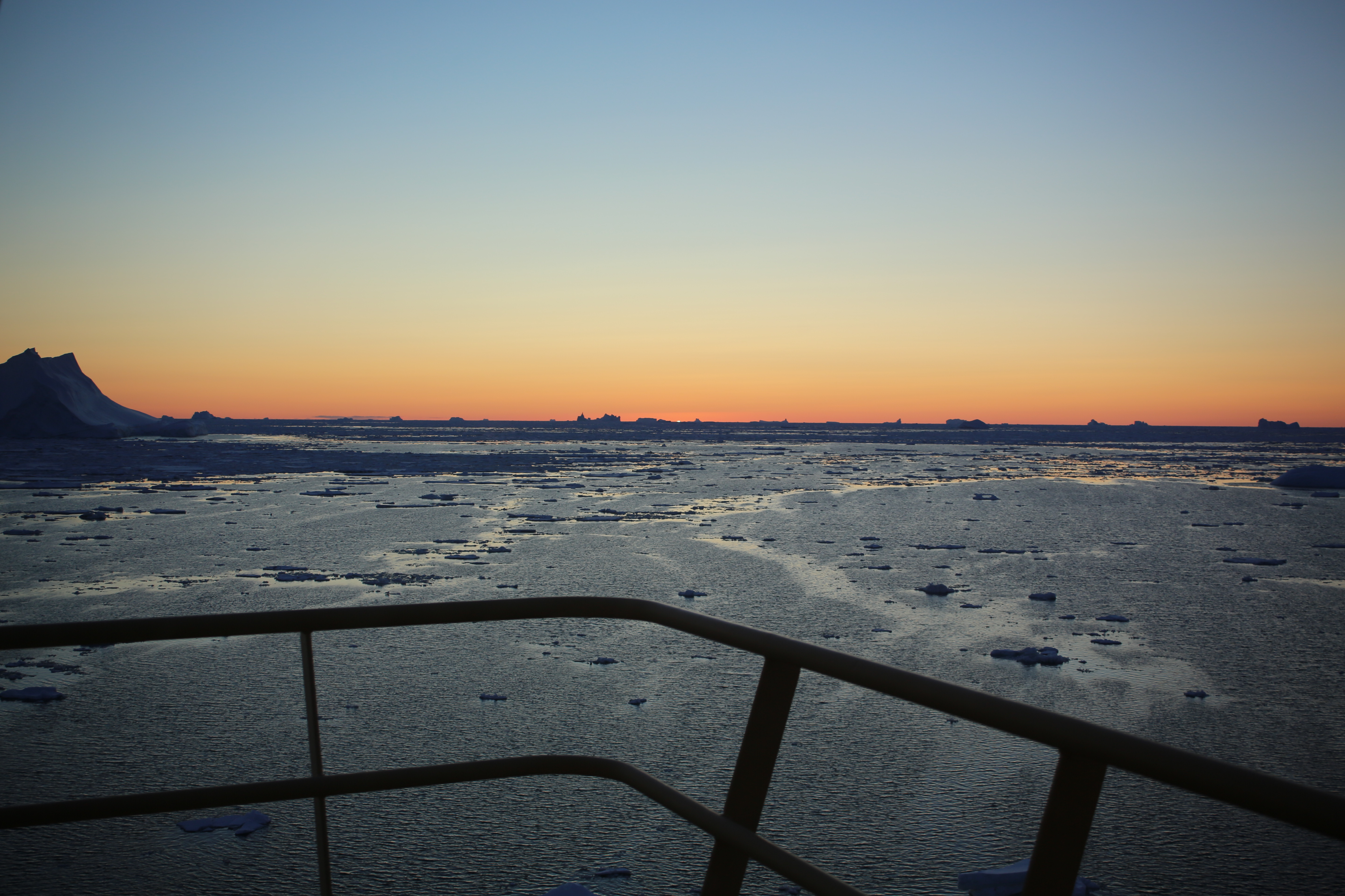 The sky remains light after sunset over the Southern Ocean. Aboard the R/V Nathaniel B. Palmer icebreaker in the Southern Ocean.