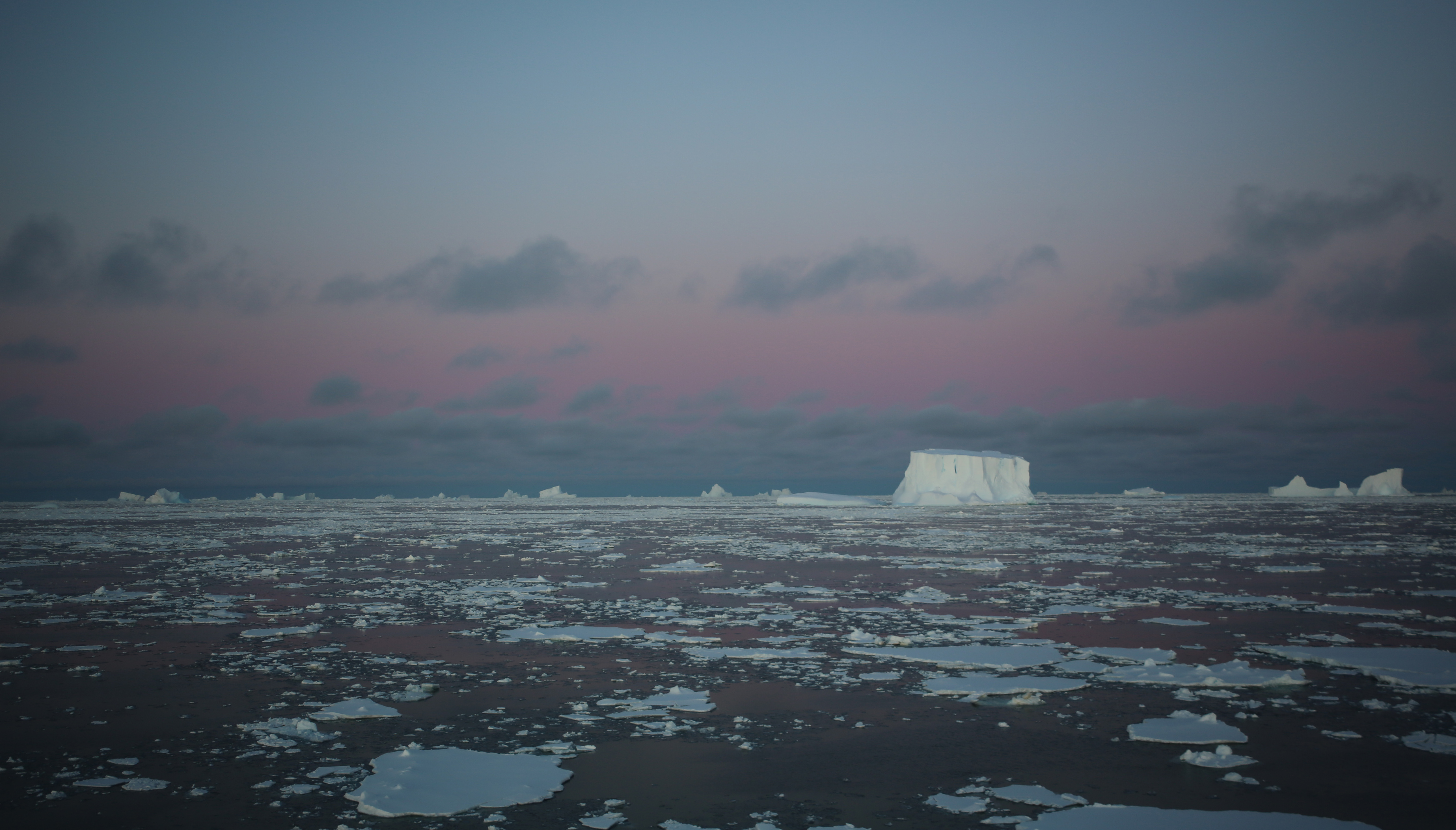 The sky remains light after sunset over the Southern Ocean. Aboard the R/V Nathaniel B. Palmer icebreaker in the Southern Ocean.