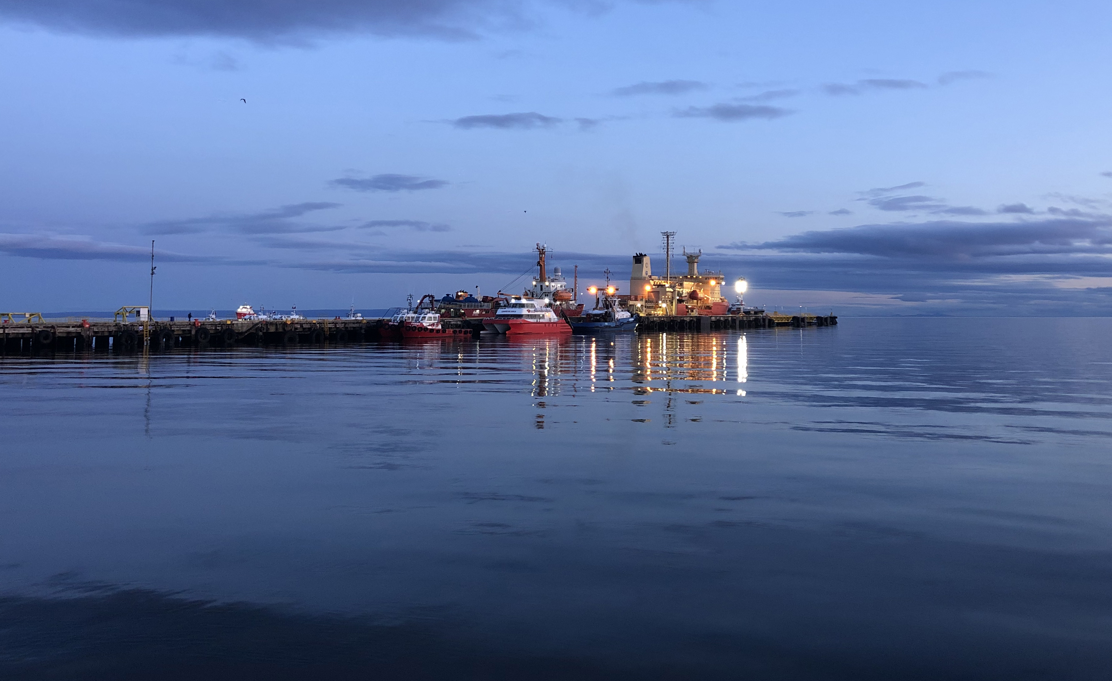 The R/V Nathaniel B. Palmer icebreaker is docked at the pier in Punta Arenas, Chile the night before departing for Antarctica.