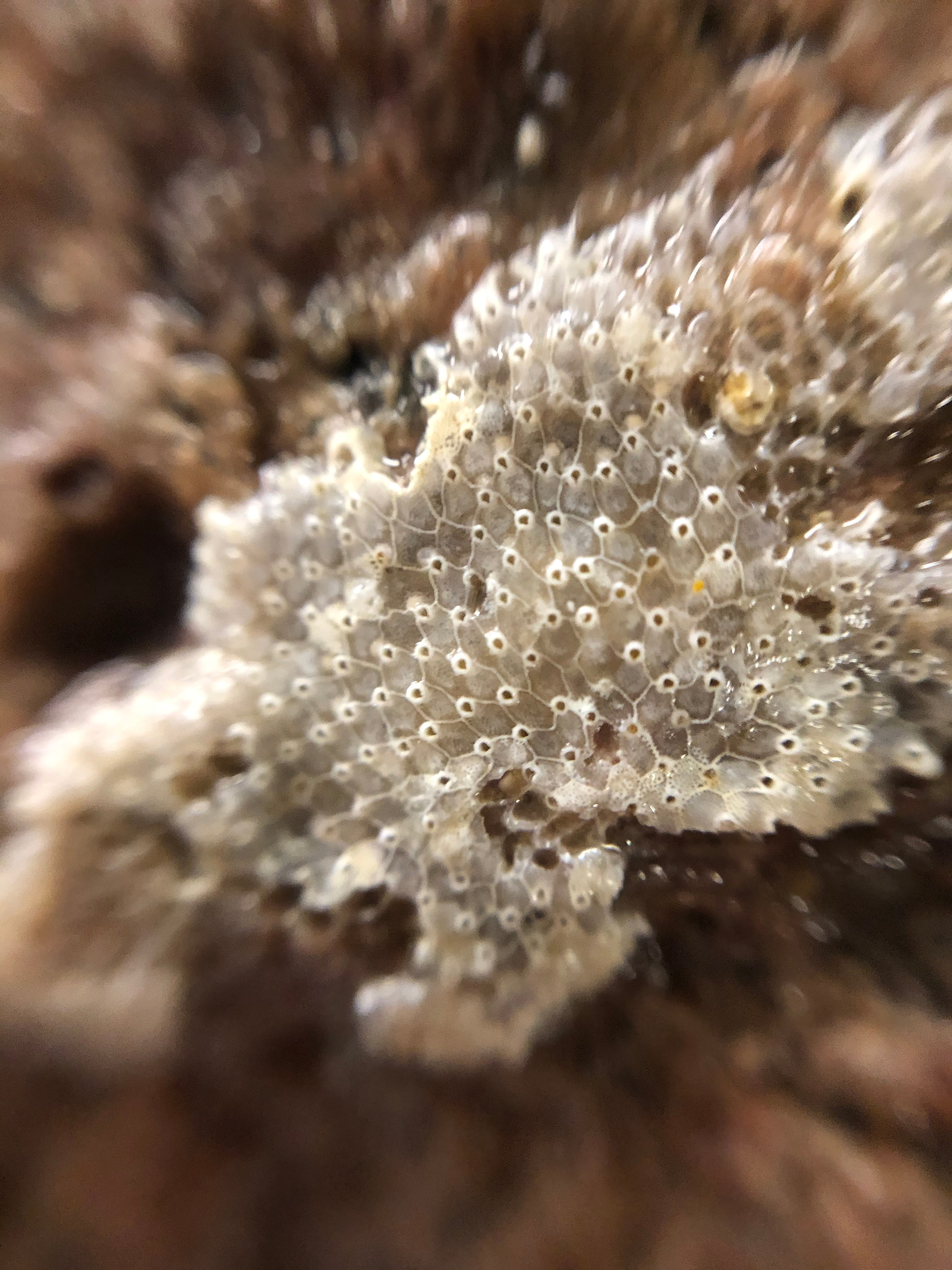 Bryozoans are filter-feeding invertebrate organisms that frequently live in colonies, like this one clustered on a drop stone. Aboard the R/V Nathaniel B. Palmer icebreaker in the Southern Ocean.