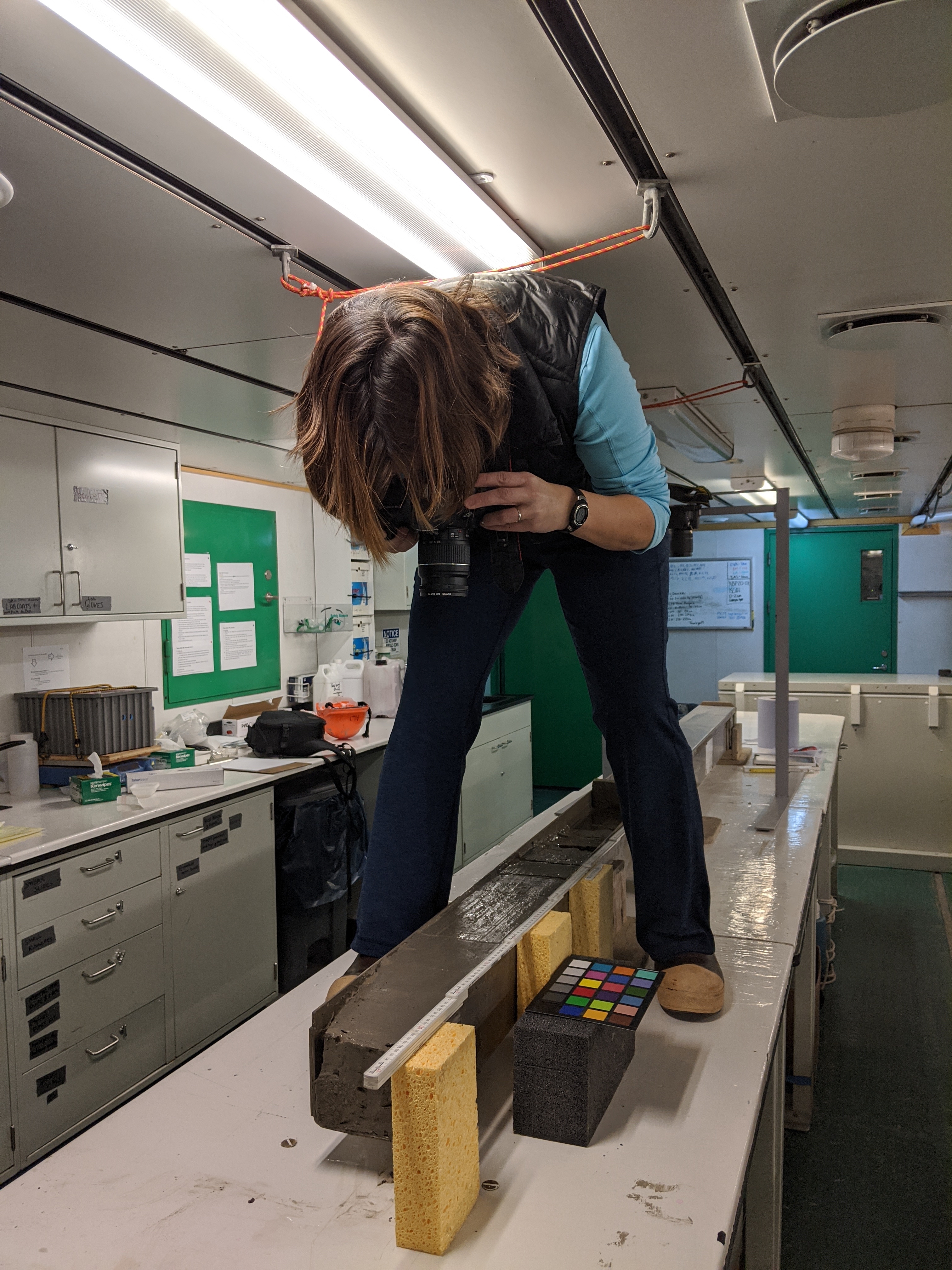 Photos were taken of the sediment in every Kasten core collected, which will be saved as archival evidence. Aboard the R/V Nathaniel B. Palmer icebreaker in the Southern Ocean.