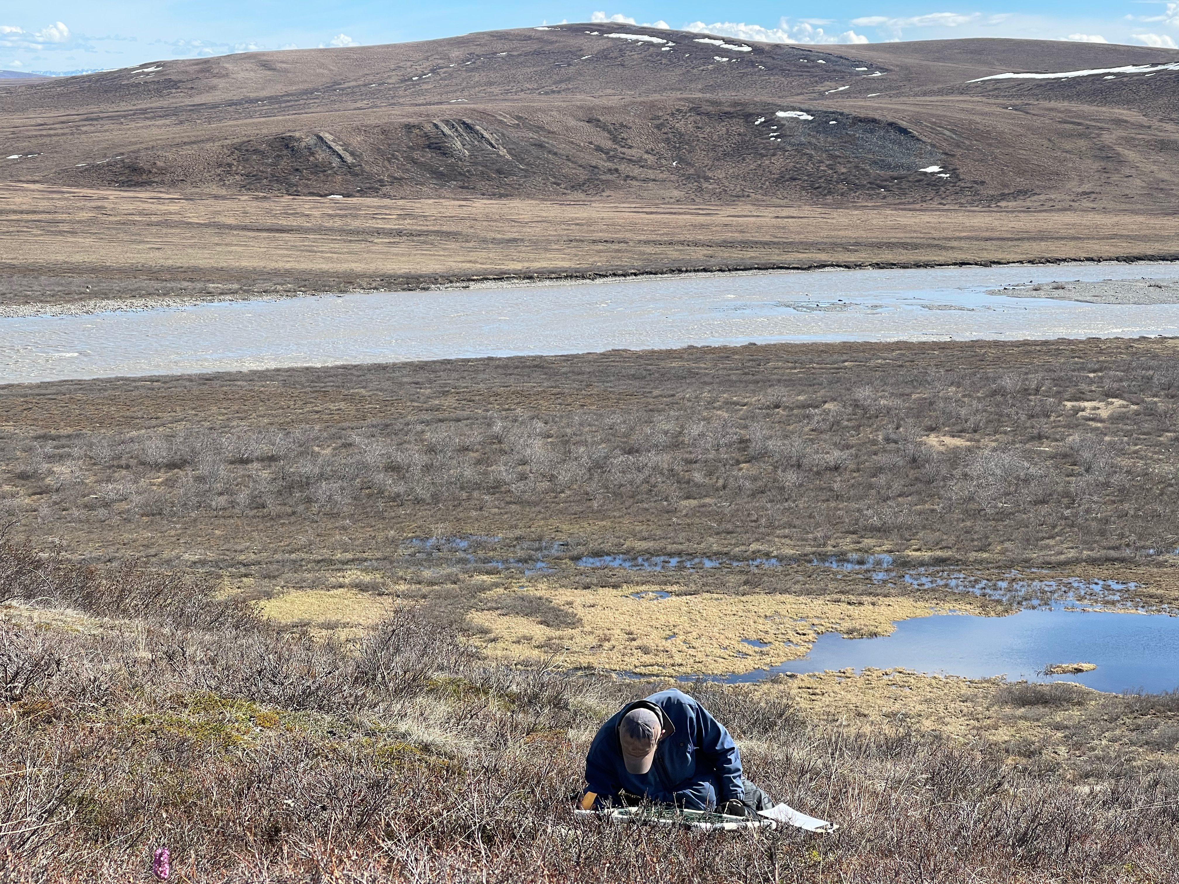 Jeremy May counts berries on a slope near the Sagavanirktok River. Dalton Highway, Alaska.