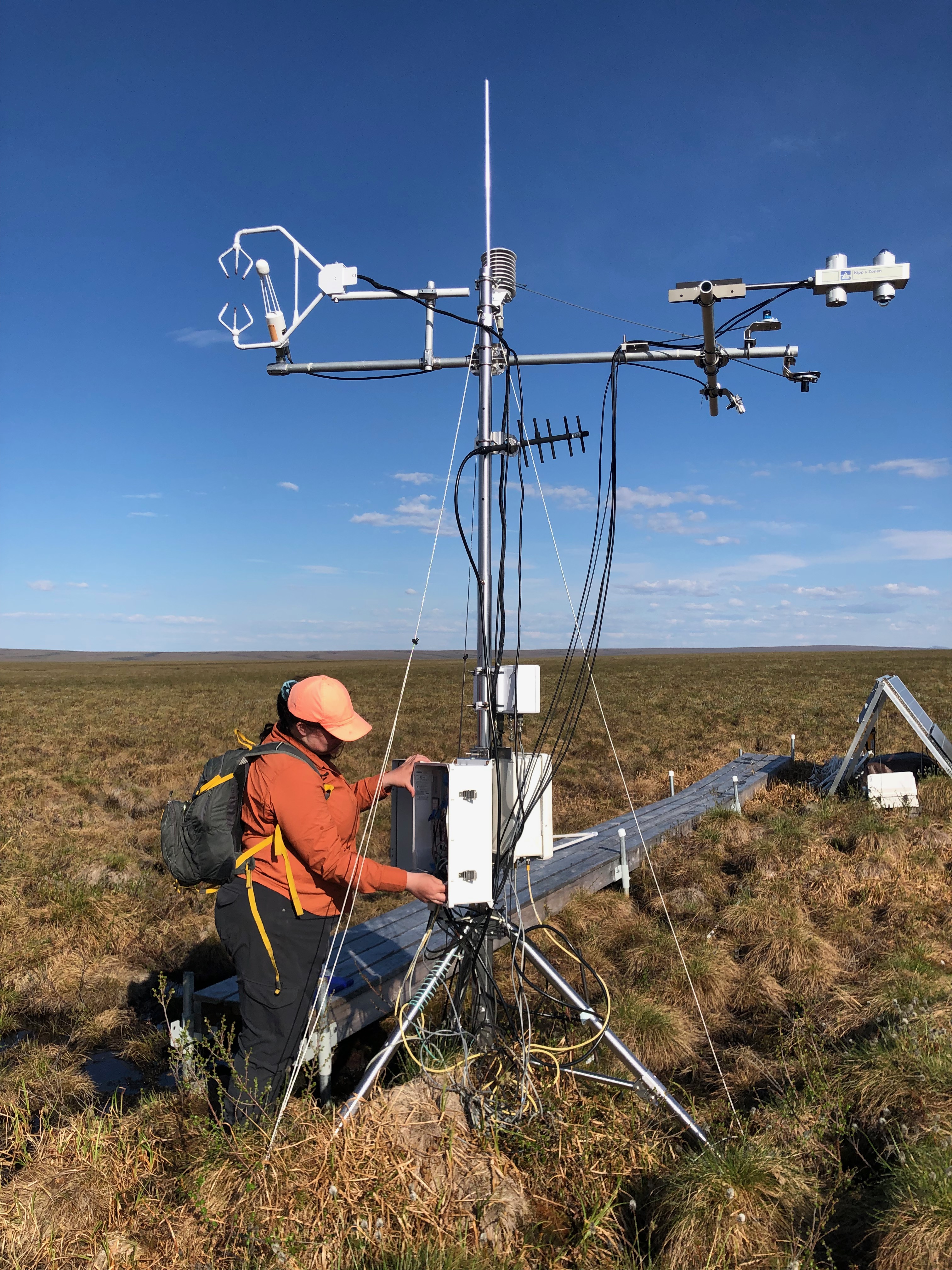 Liza Backman operates the meterological station at the Anatuvuk burn site, outside Toolik Field Station, Alaska.