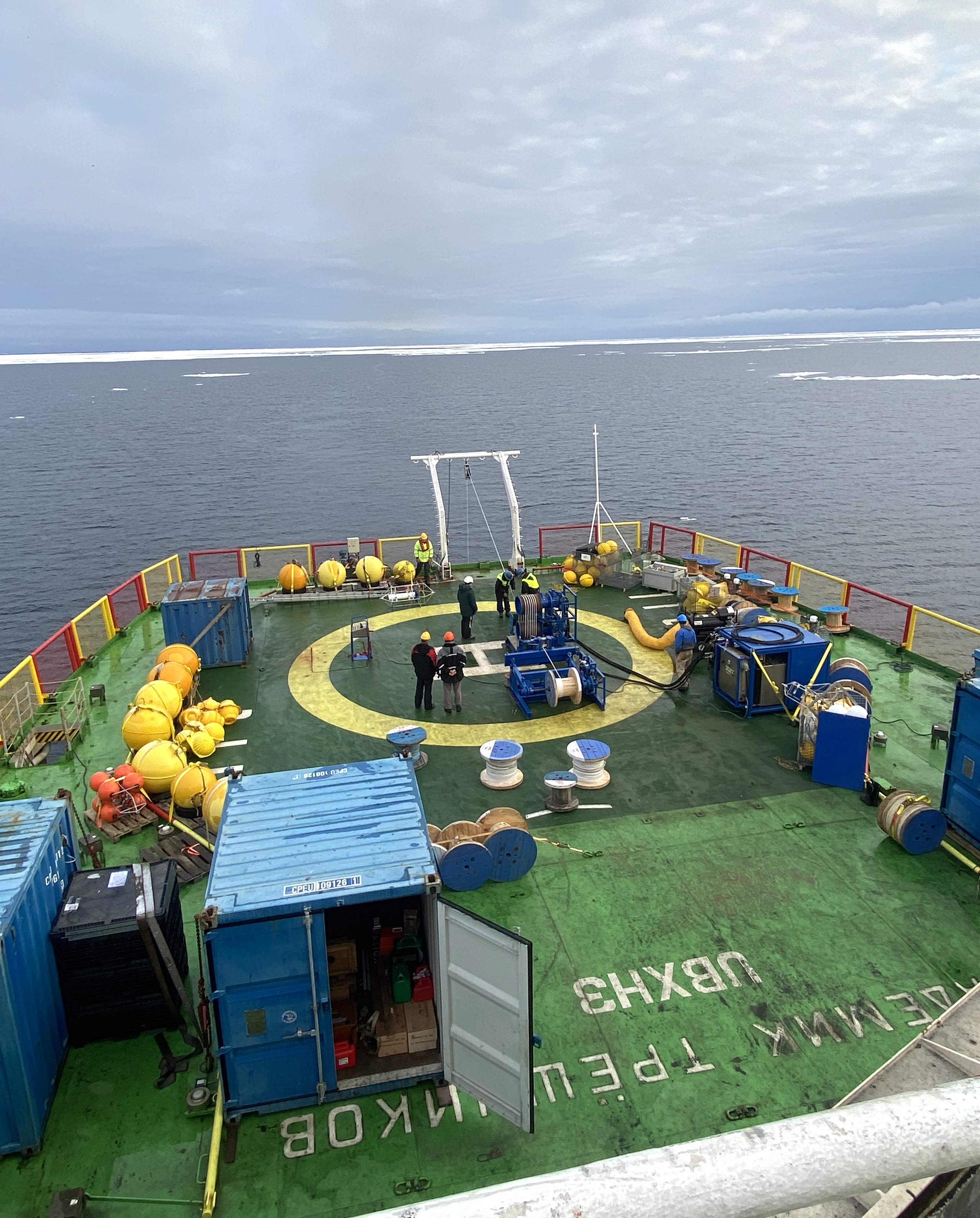 Mooring operations during calm seas. Aboard the Akademik Tryoshnikov in the Laptev Sea.