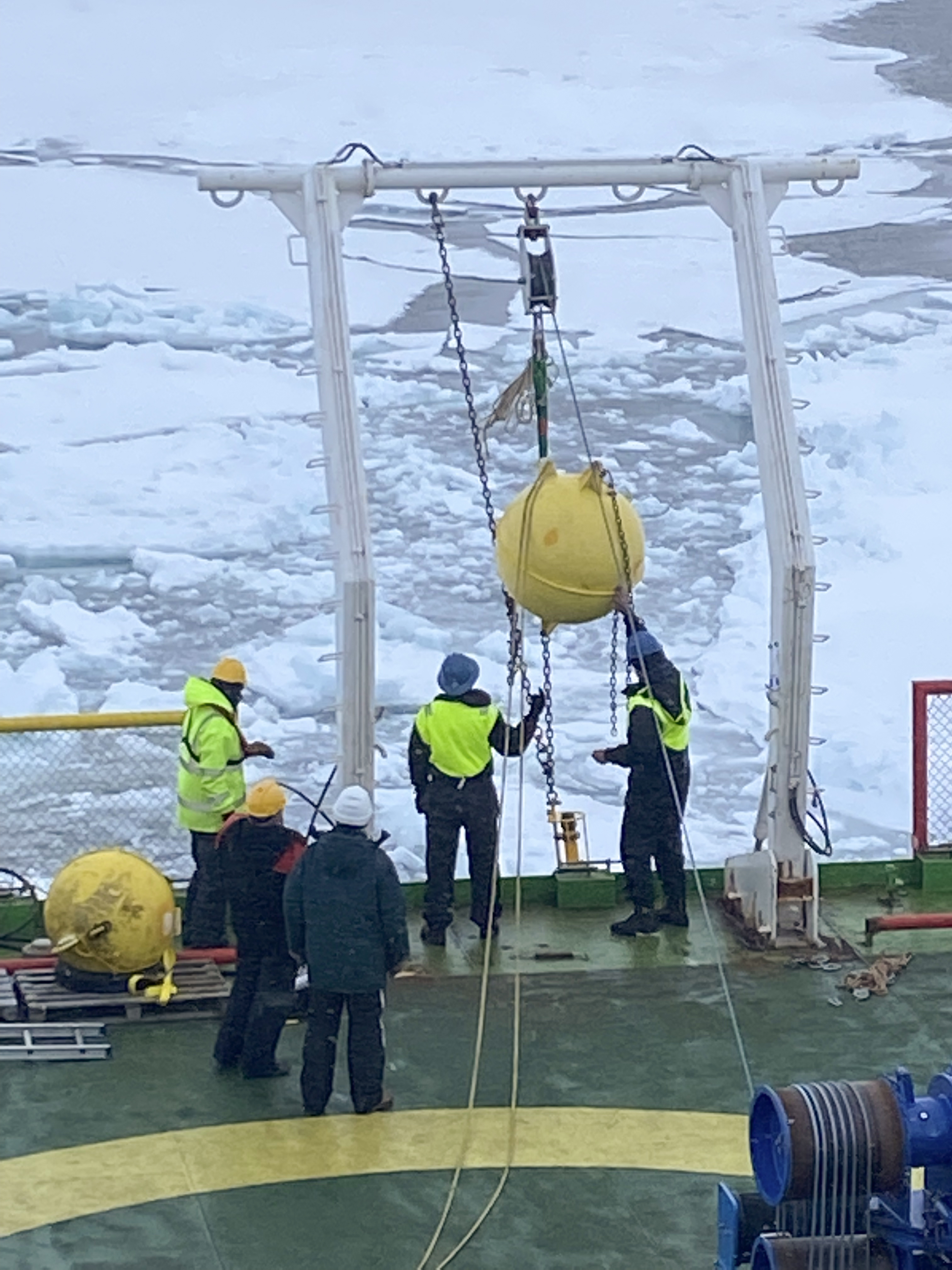 Mooring operations in the sea ice. Aboard the Akademik Tryoshnikov in the Laptev Sea.