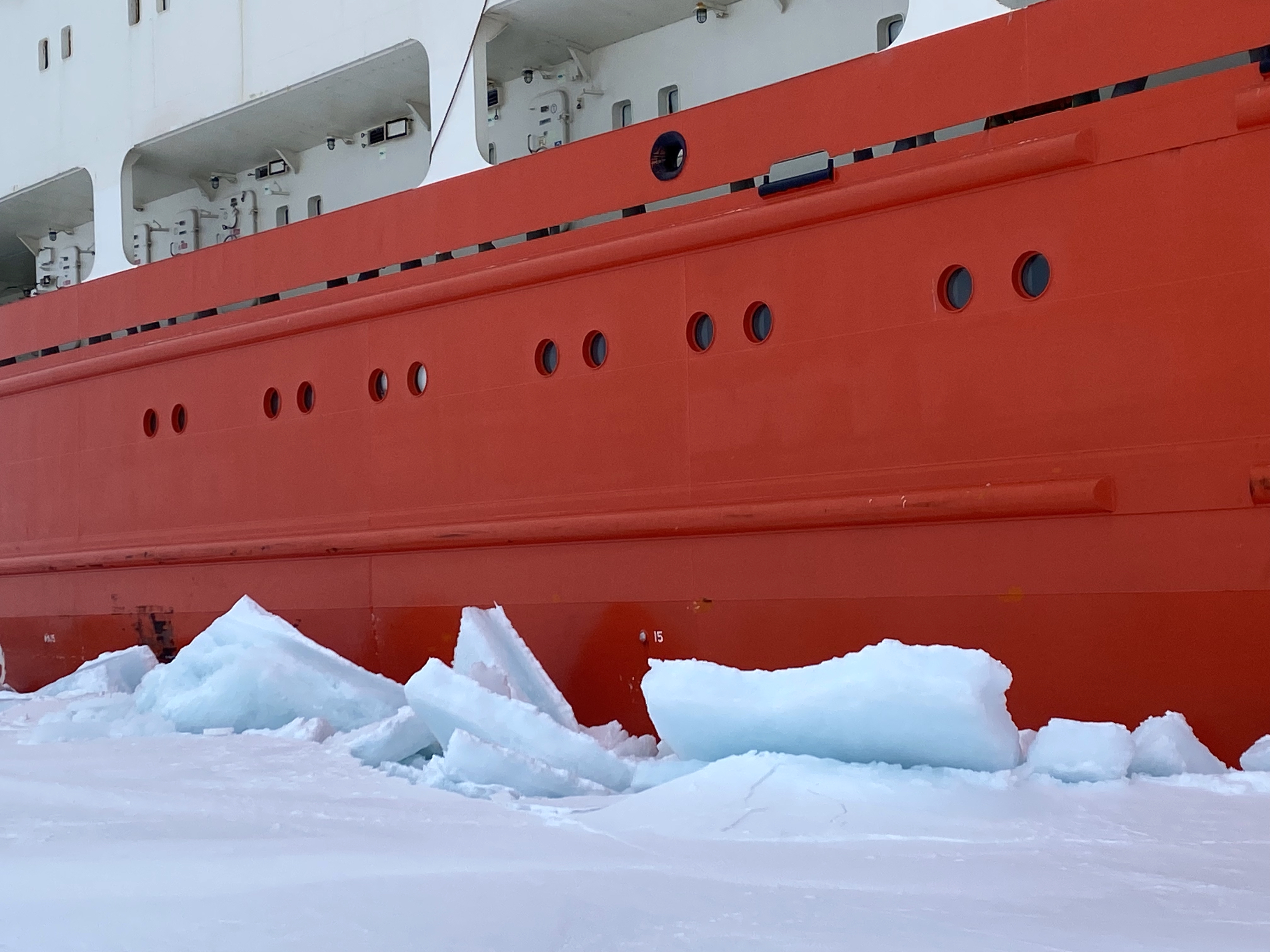 The Akademik Tryoshnikov parked in the sea ice of the East Siberian Sea.