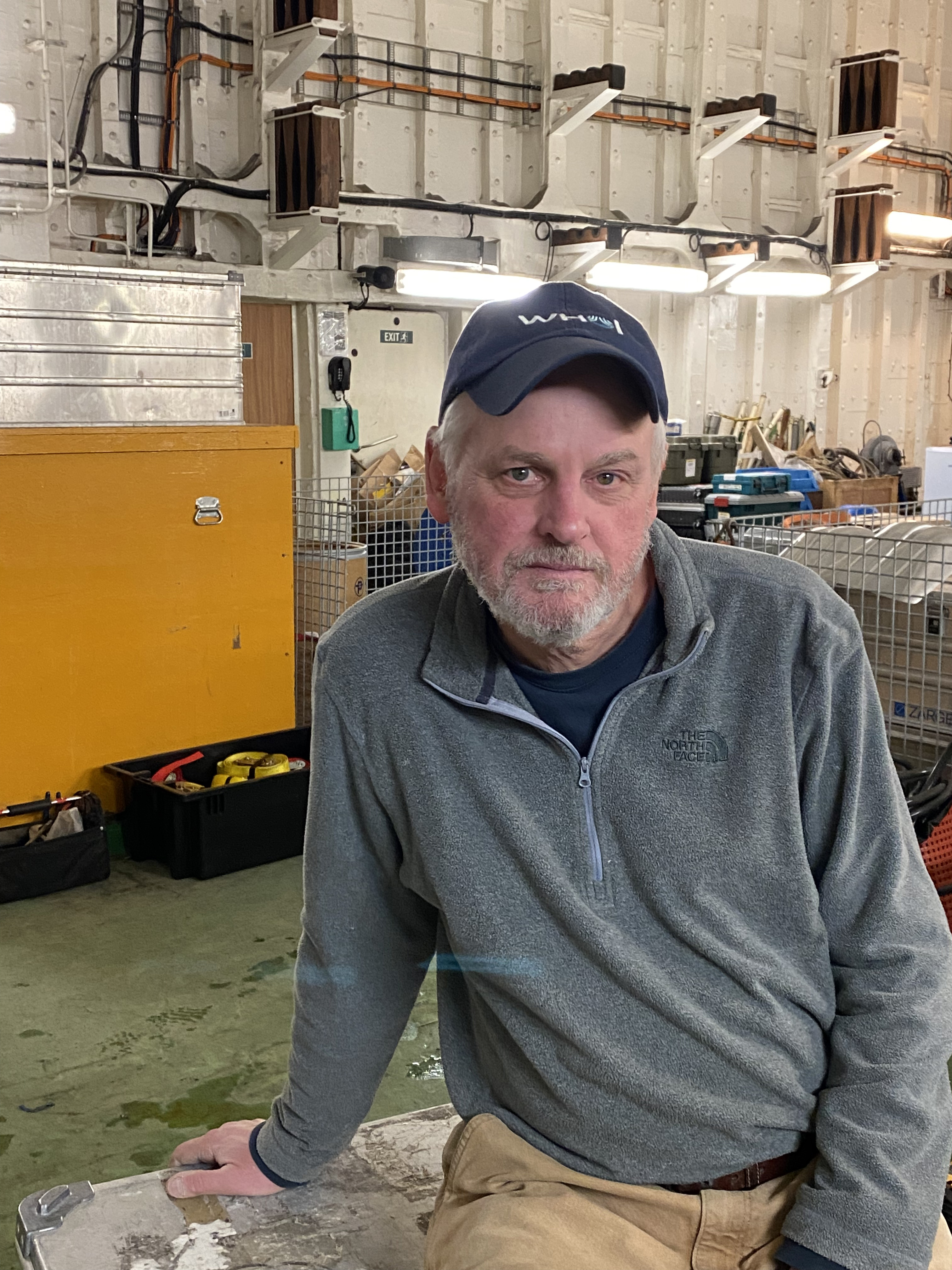 WHOI (Woods Hole Oceanographic Institution) technical group leader John Kemp aboard the Akademik Tryoshnikov in the Barents Sea.