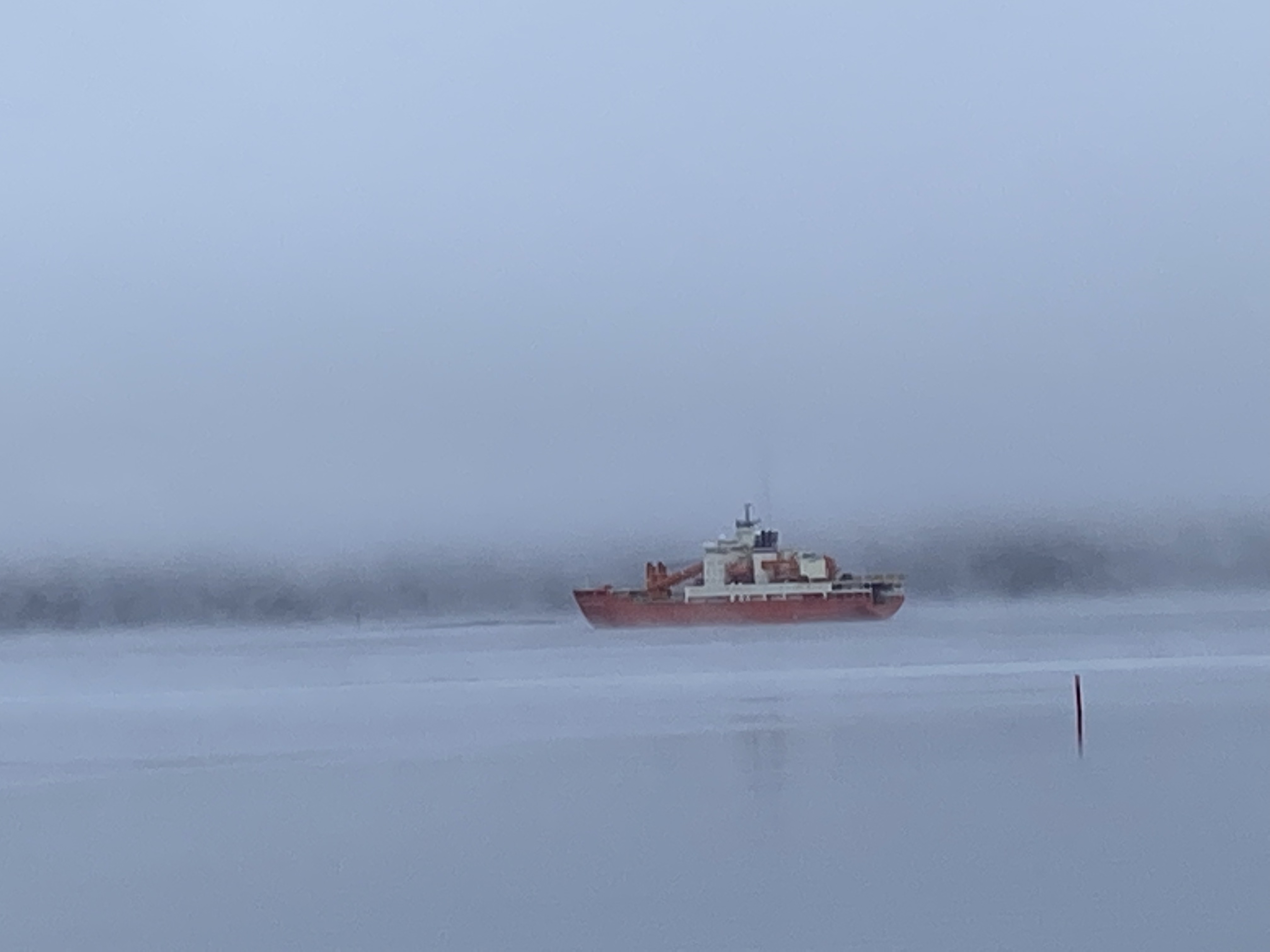 The Akademik Tryoshnikov leaves the harbor of Kirkenes, Norway in the fog, signifying the end of the NABOS (Nansen and Amundsen Basins Observational System) 2021 expedition.