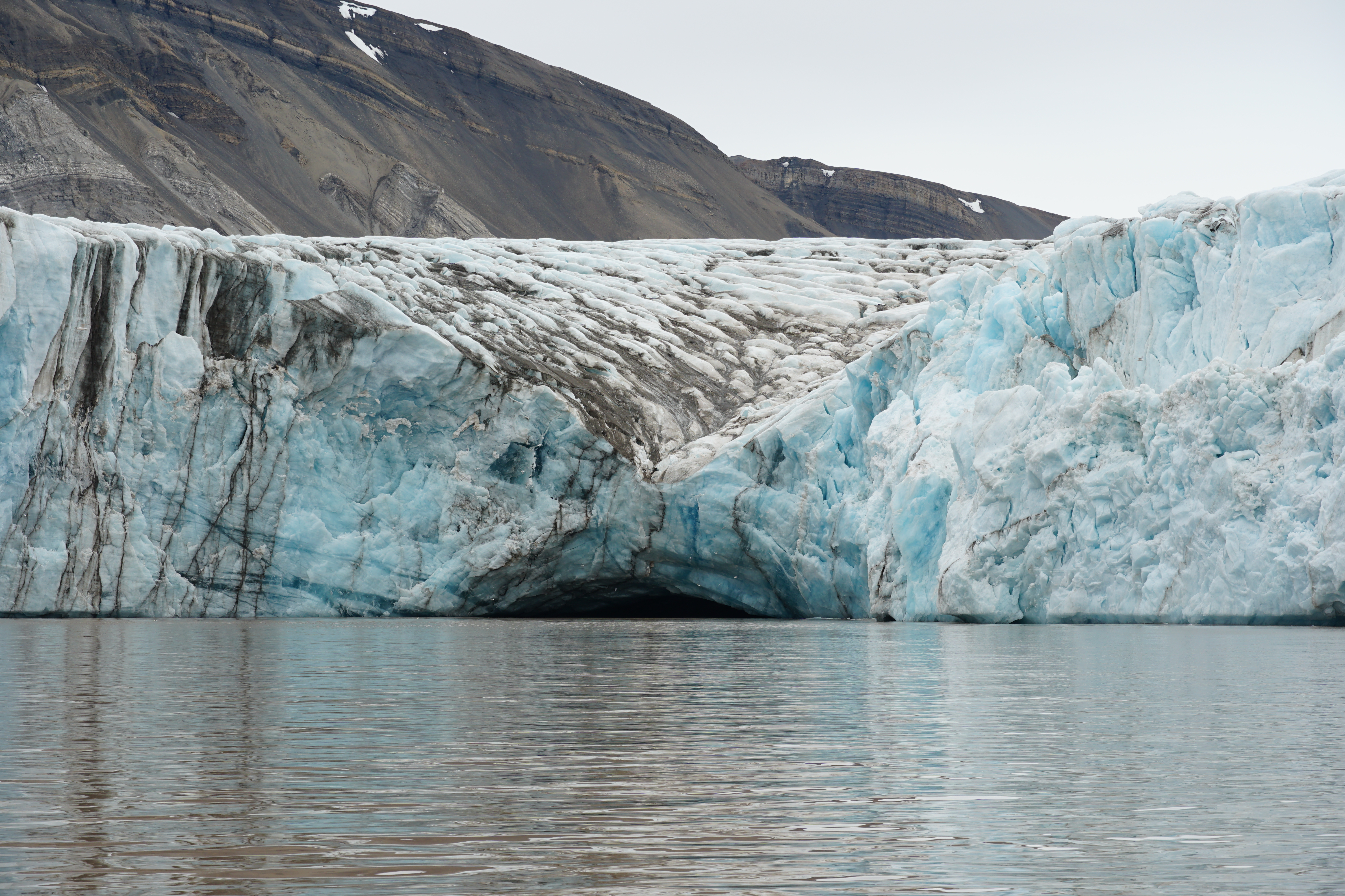 An upwelling plume area at the face of Kongsvegen Glacier. Ny Ă…lesund, Svalbard, Norway.