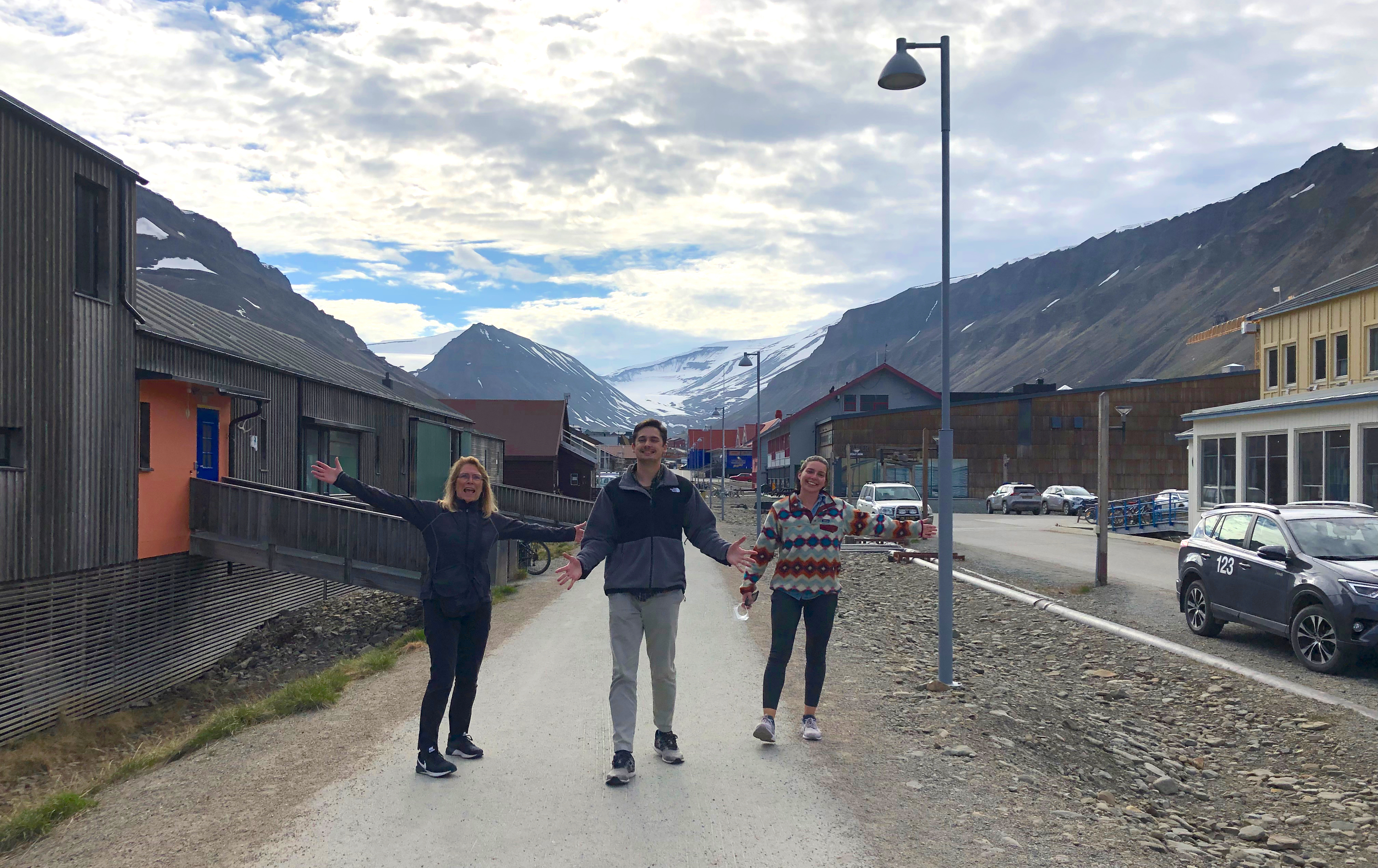 The team's first afternoon in Svalbard, Norway, walking through downtown Longyearbyen.