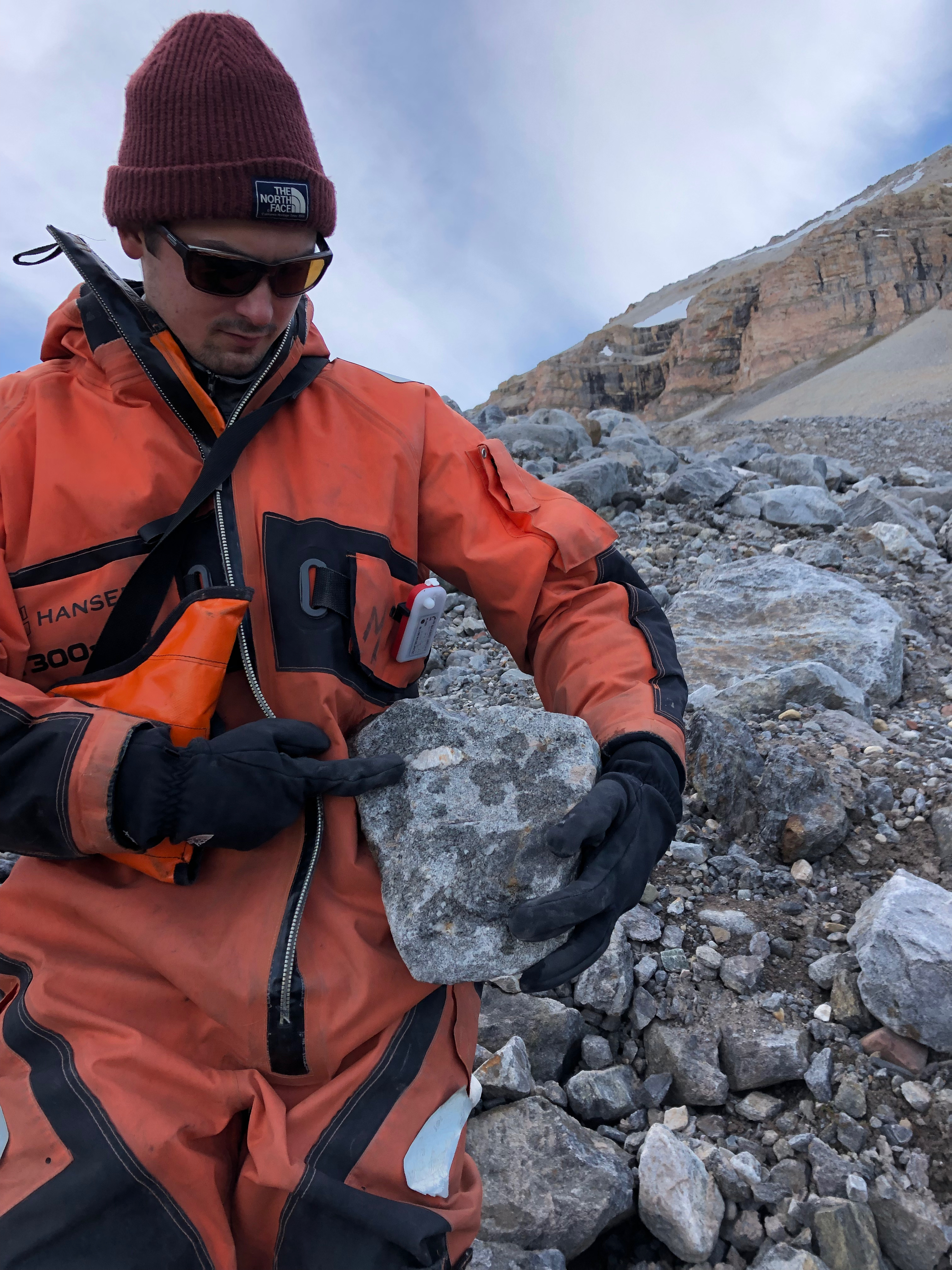 Mark Goldner: "Xander Kirshen is really into rocks and rock formation, so we had a great discussion about geology on the way down from the drone flying." Ny Ă…lesund, Svalbard, Norway.