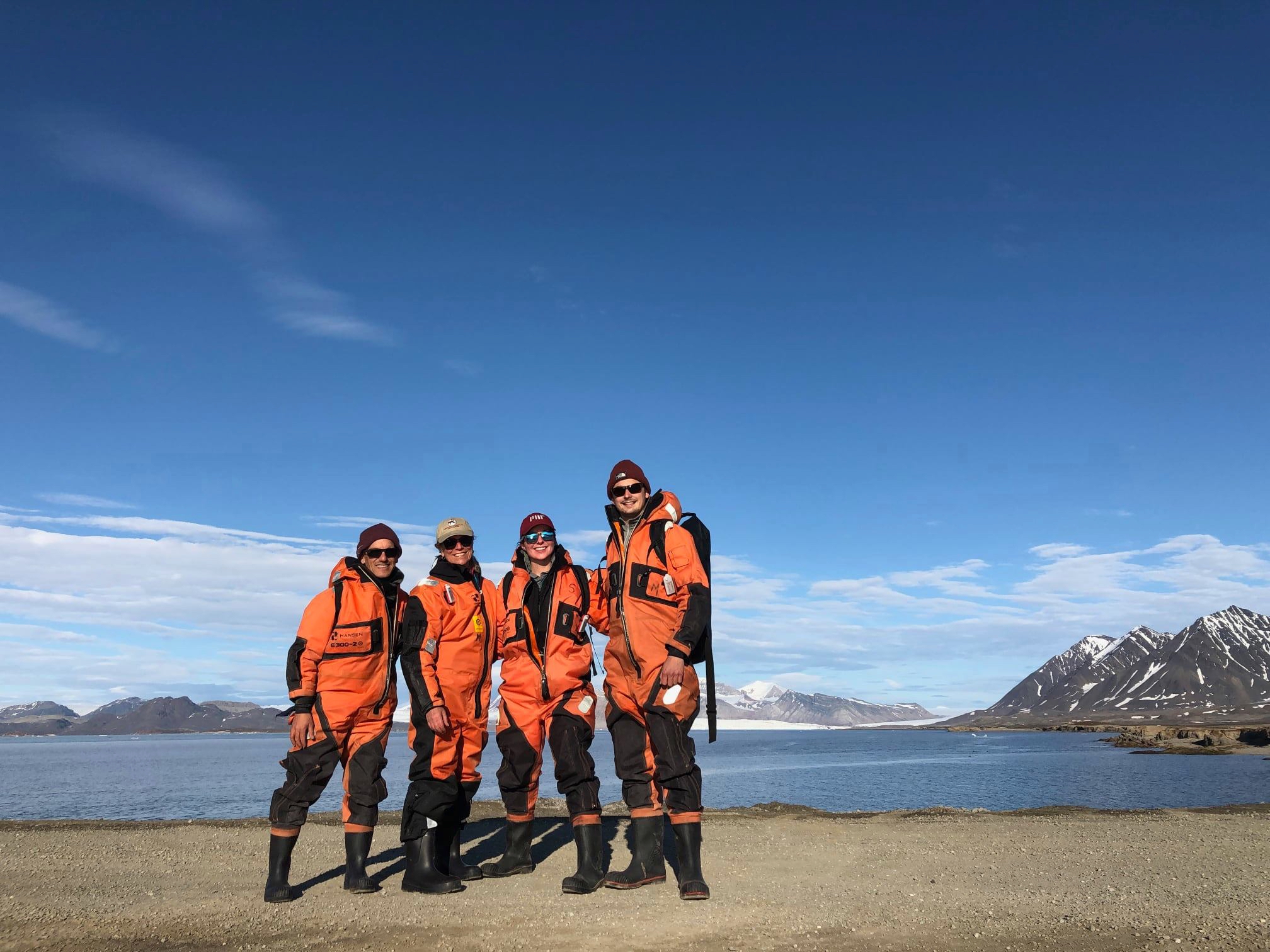The research team poses after a long day of successful data collection. Ny Ă…lesund, Svalbard, Norway.