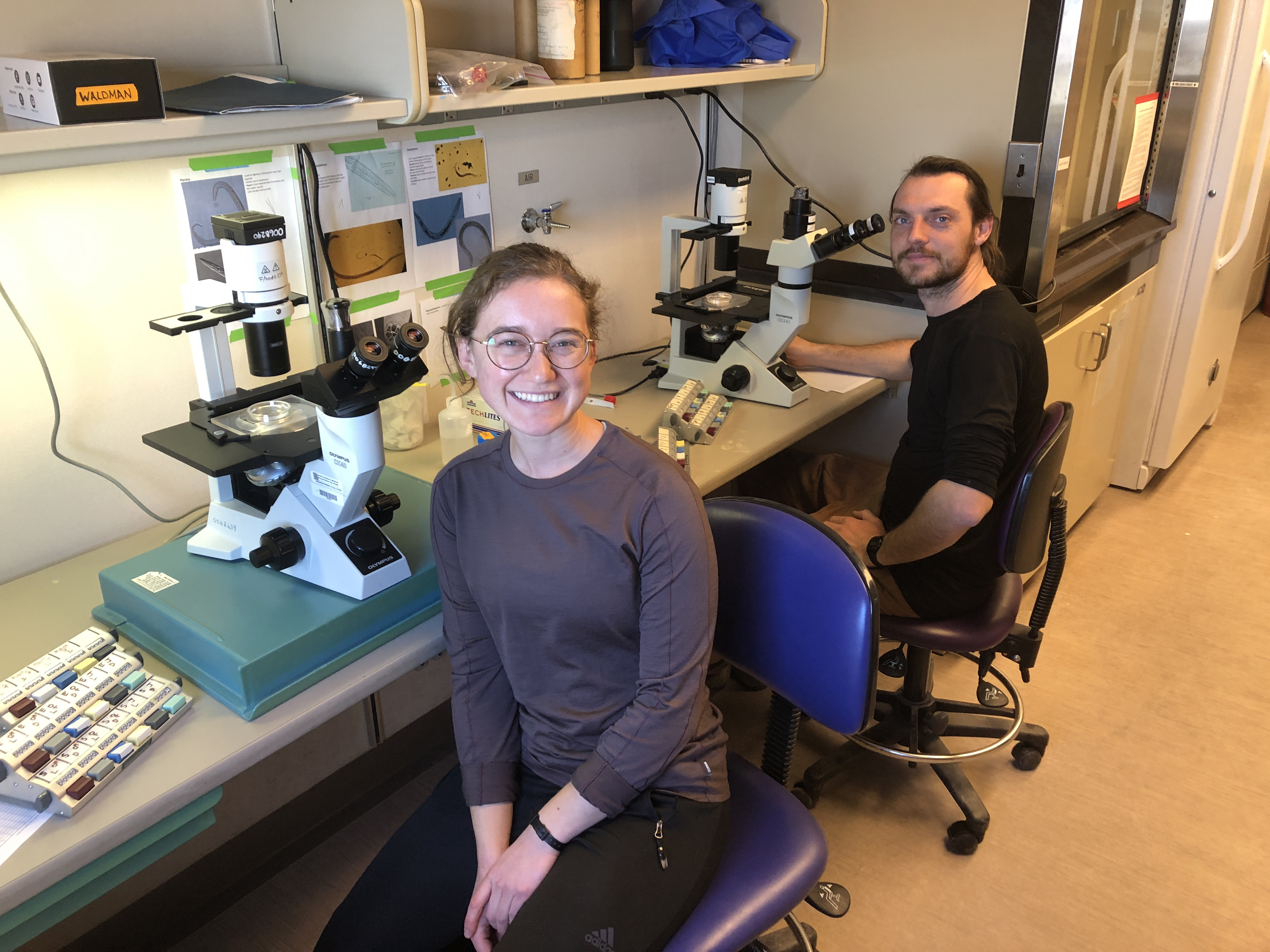 Abigail Borgmeir and Jesse Jorna at work in Crary Lab at McMurdo Station, Antarctica.