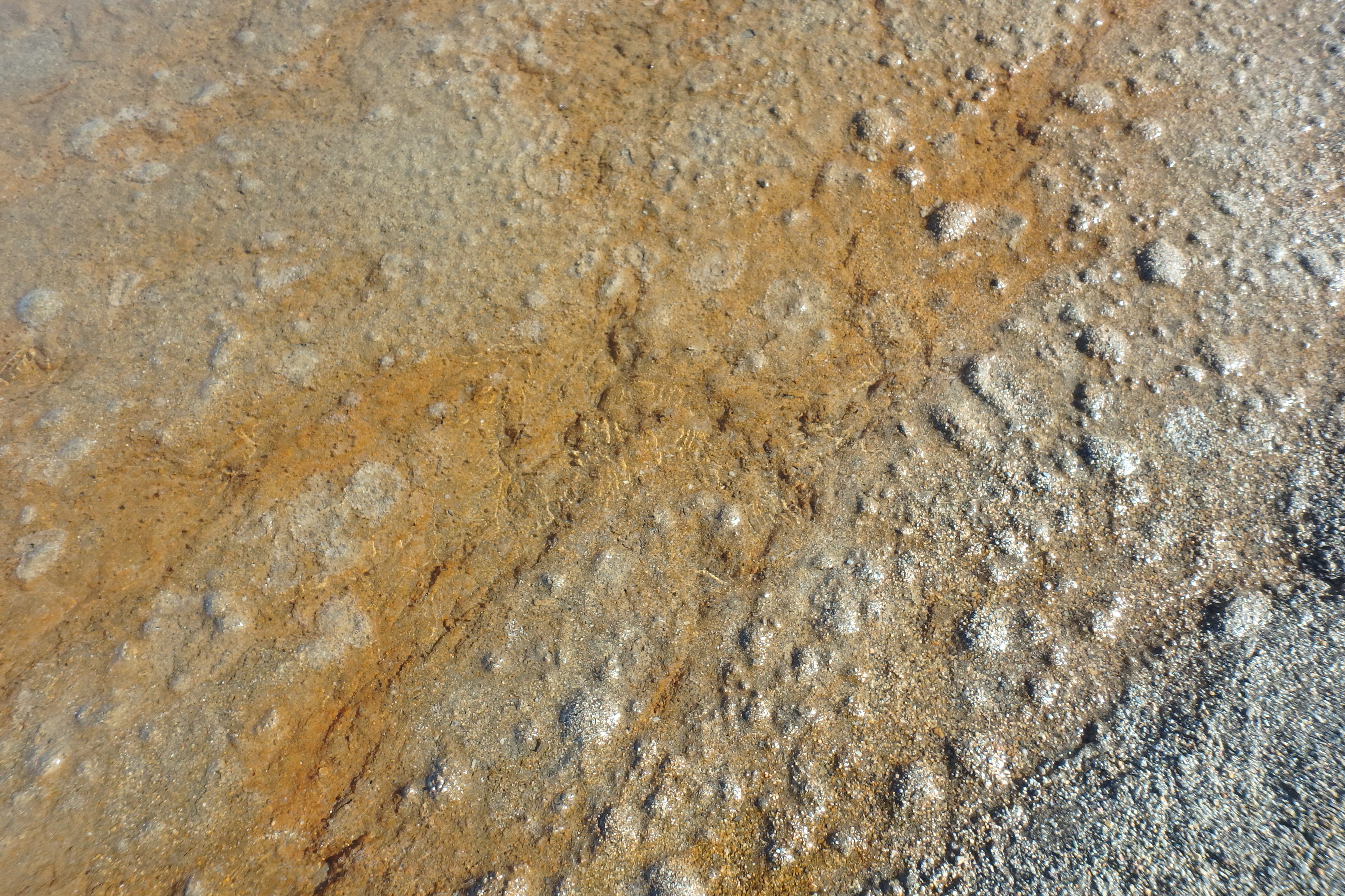 A red mat in the early stage of formation in a meltwater stream on Hjorth Hill, near the Ross Sea, Antarctica.