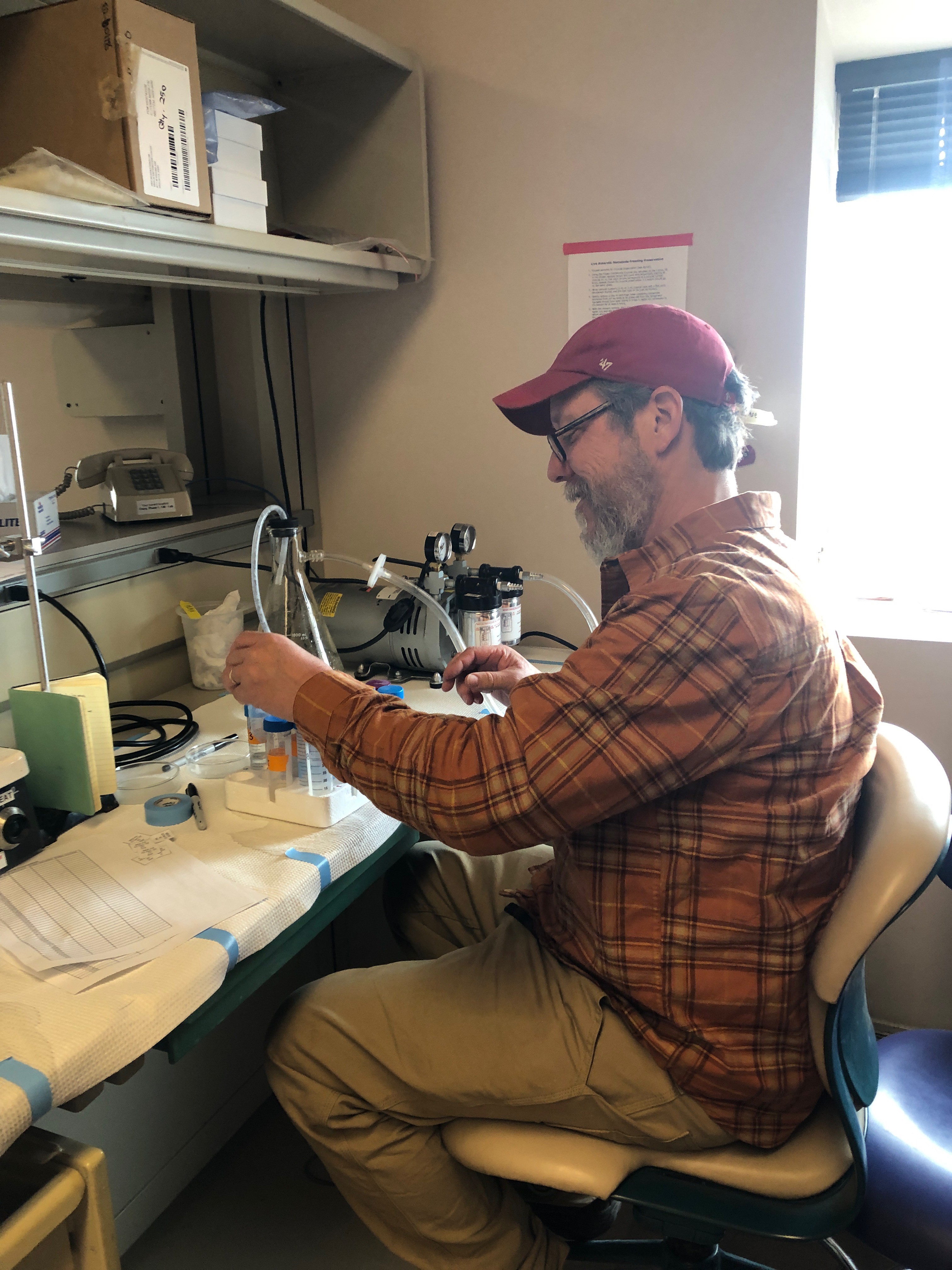 Bill Henske prepares some worm samples for freezing in cryotubes. Crary Lab, McMurdo Station, Antarctica.