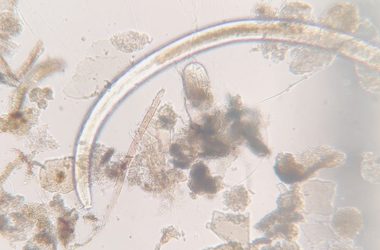 Nematode, Eudorylaimus sp. is a large, lumbering nematode found in soils richer in moss and nutrients. Crary Lab, McMurdo Station, Antarctica.