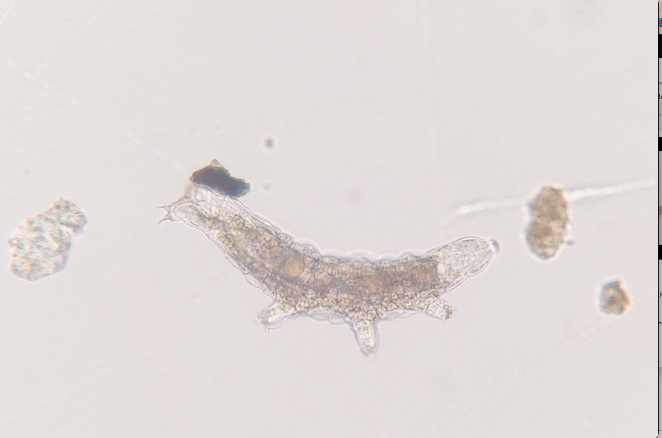 A tardigrade from the McMurdo Dry Valley ecosystem under a microscope. Crary Lab, McMurdo Station, Antarctica.