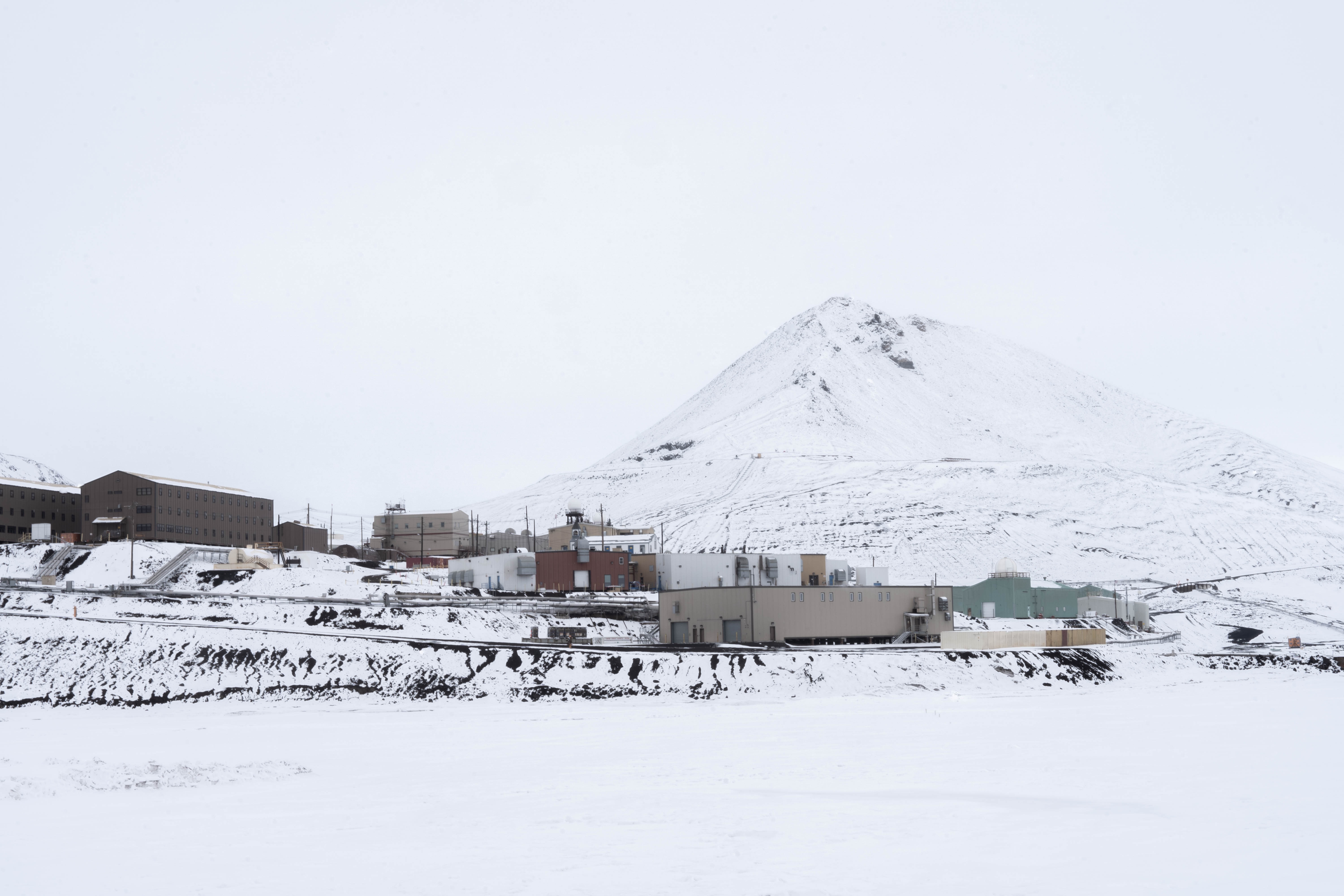 Snow covering Observation Hill and McMurdo Station, Antarctica.