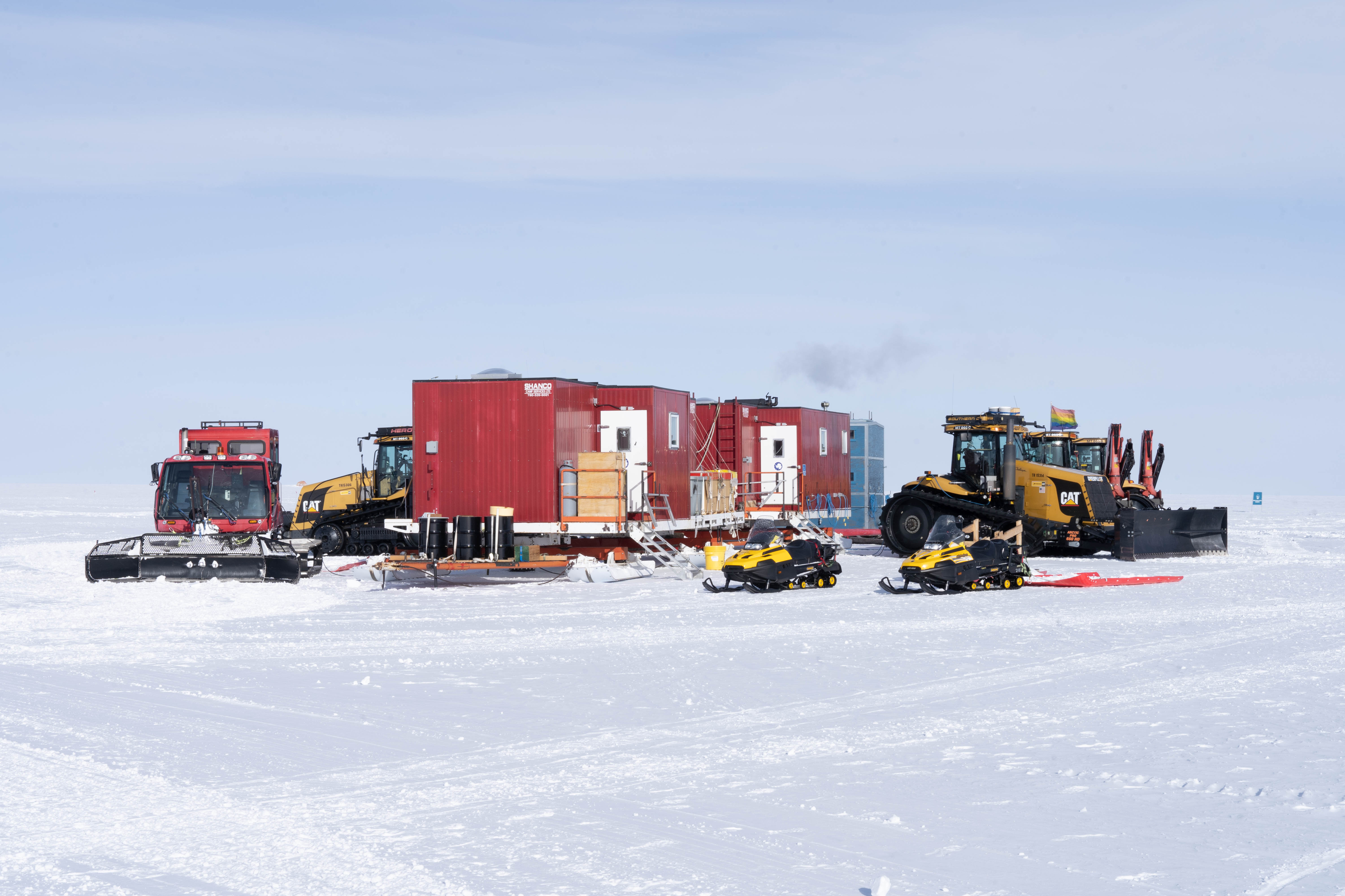 The South Pole Traverse (SPoT) parked outside of the Amundsen–Scott South Pole Station, Antarctica.