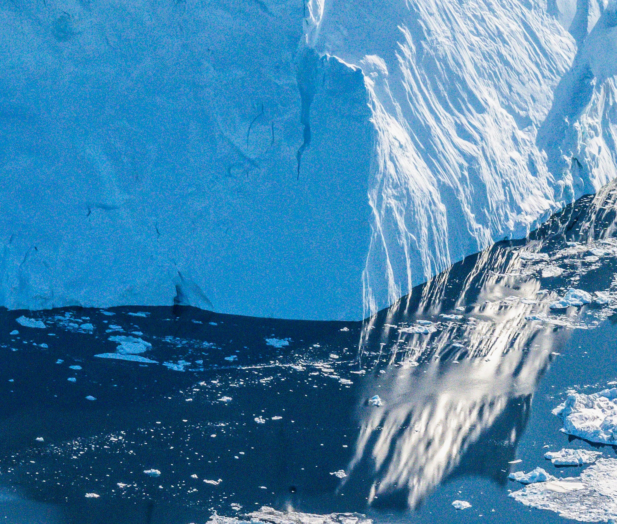 An aerial view of an iceberg. According to the U.S. Geologic Survey, 90% of an iceberg is below water. Near Ilulissat, Greenland.
